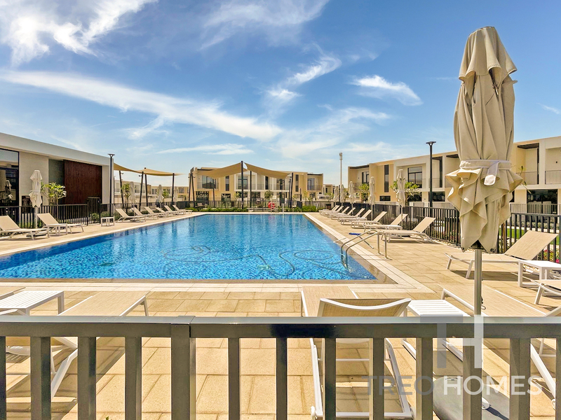 Spacious 4-bedroom townhouse in Greenview 3, Emaar South, offering serene views of the pool and lush park. This modern home features an open-plan living and dining area, a sleek kitchen, and large windows that fill the space with natural light. Upstairs, generous bedrooms include a master suite with en-suite bathroom and balcony. The private garden opens to landscaped community areas, perfect for families. Enjoy access to top-class amenities in a peaceful, green setting, close to schools, shops, and main roads. Emaar South Mall is a community hub featuring retail, dining, and essential services. It houses a Geant Express supermarket, Wrap That Café, a pharmacy and salon..