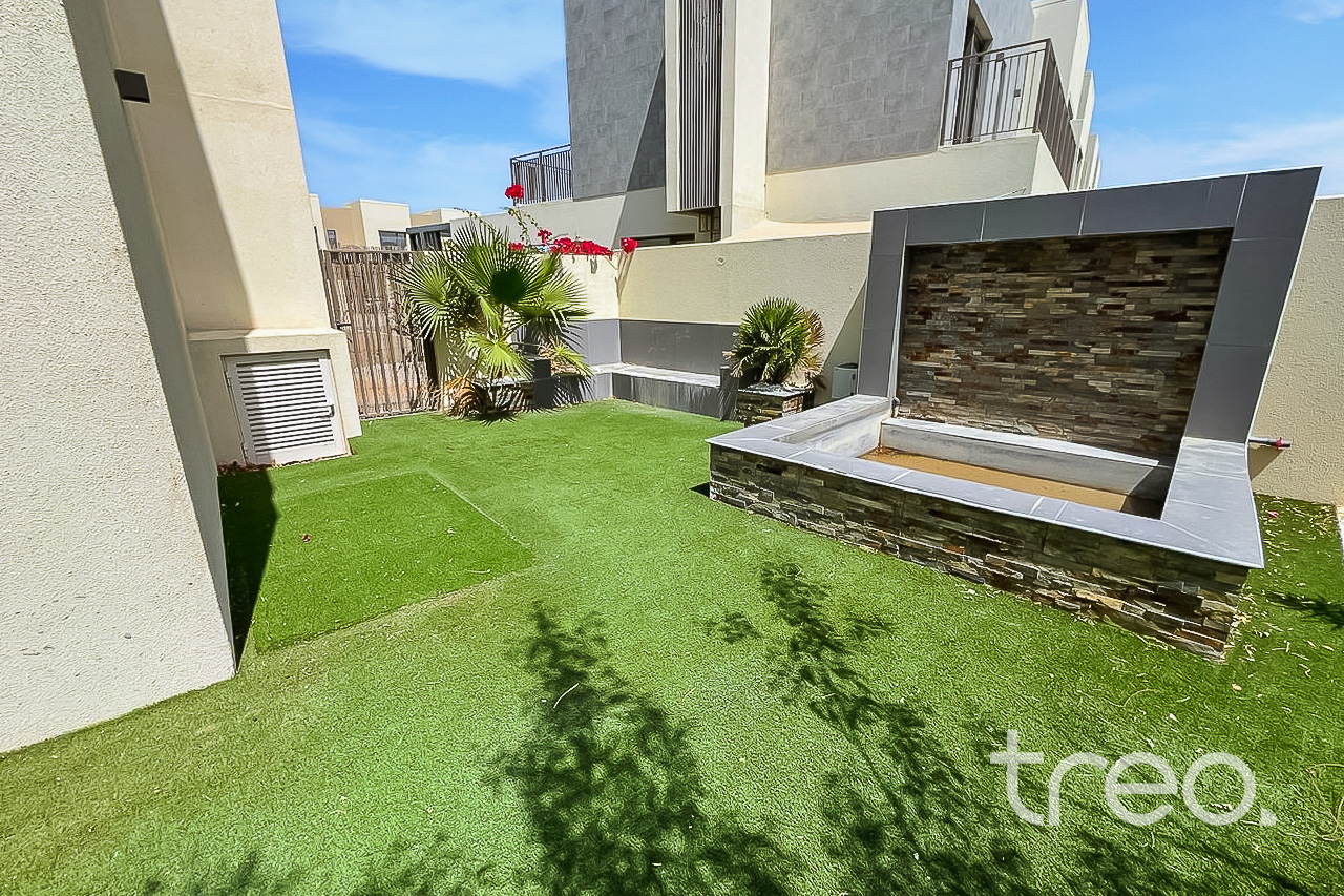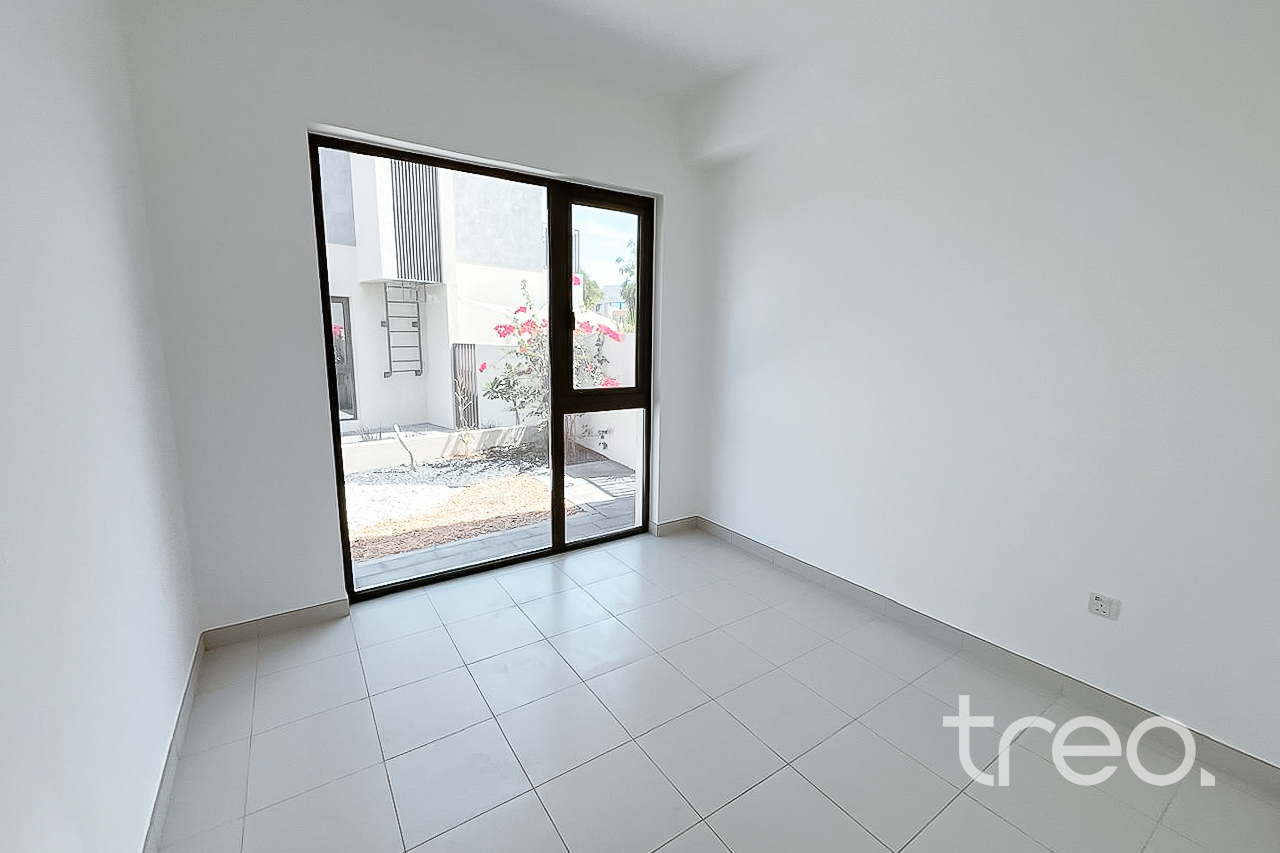 Discover this single row, corner unit: 4 bedroom + maid’s Villa in Parkside. This unique unit is well maintained and vacant now. It features a bright open-plan living and dining area, modern kitchen, built-in wardrobes, and a private, well-manicured garden, reflecting the landlord’s pride of ownership. Located in a family-friendly community with parks, pool, and walking trails, this home offers comfort, privacy, and convenience ready for immediate move-in.