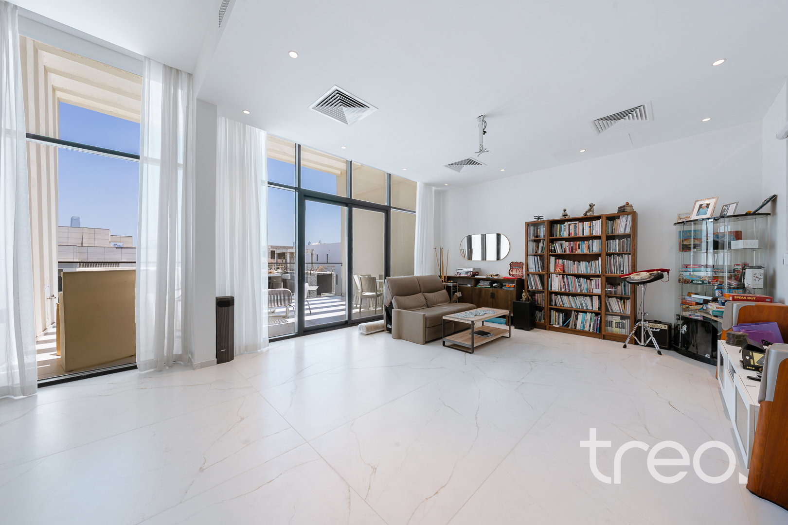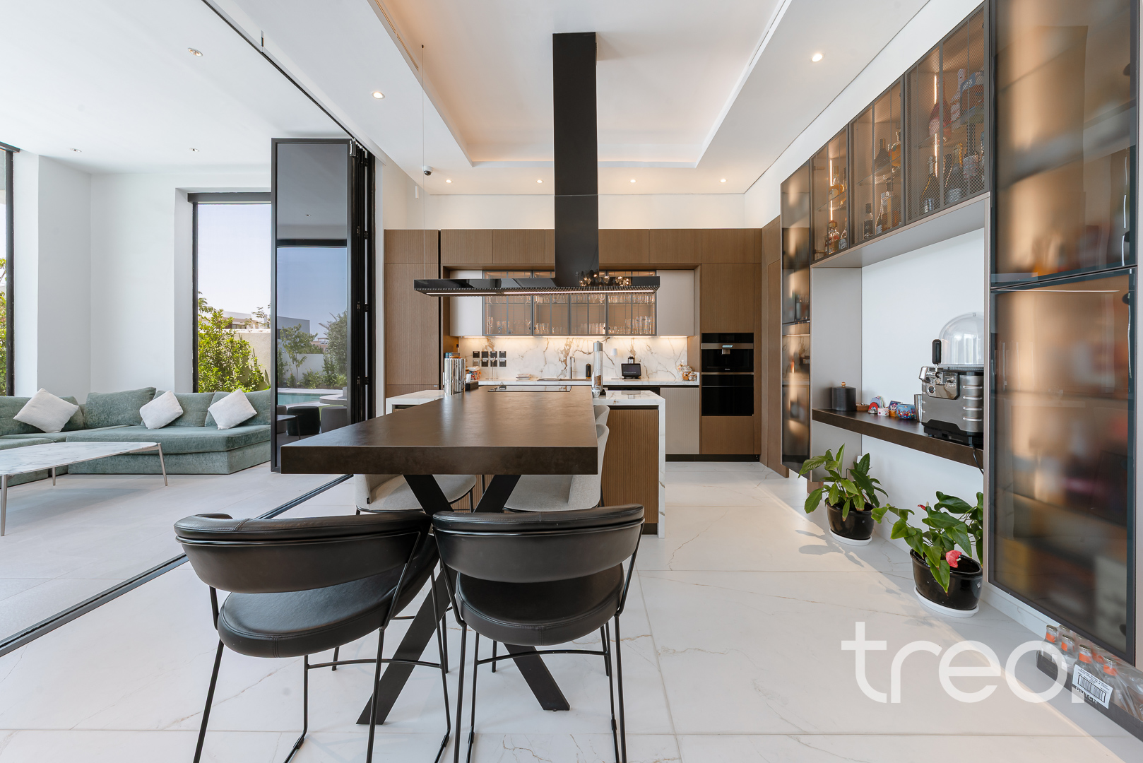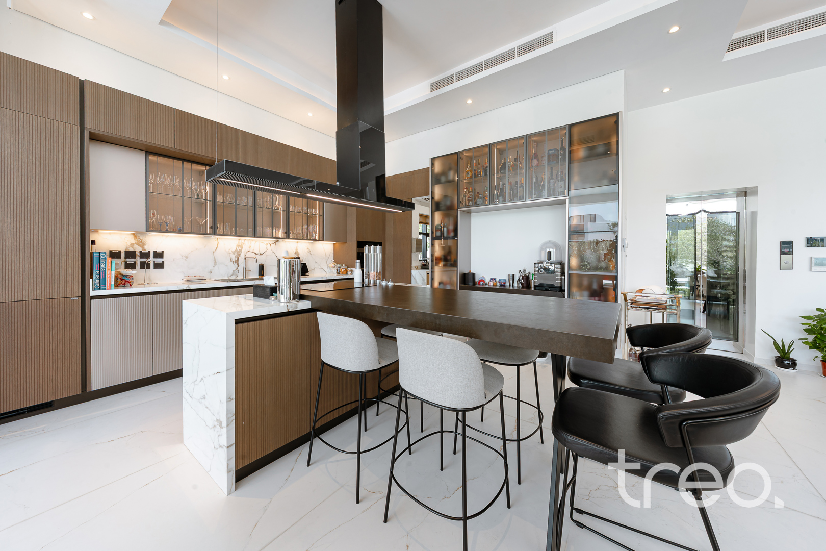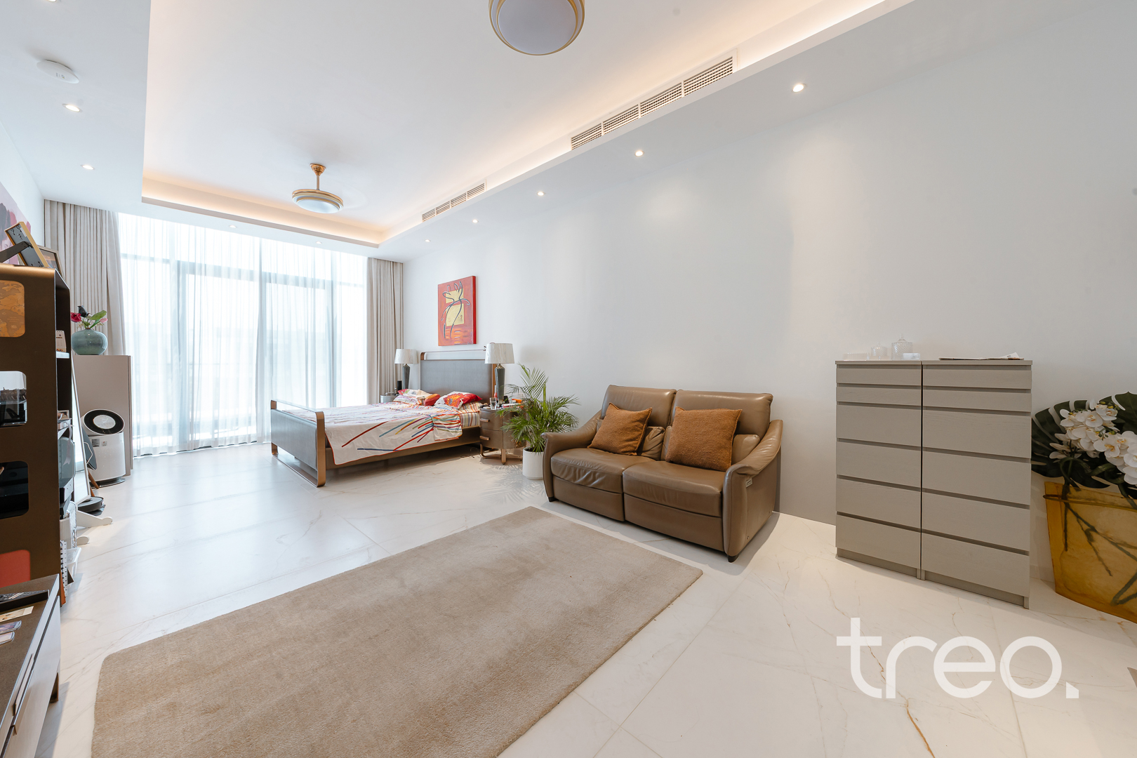 As you enter this villa, you immediately see the double height ceilings leading into the living, dining area and Italian fully fitted kitchen. Additional features include a double garage that accommodates two cars, a chef's kitchen, a maid's room, a driver's room and one downstairs en-suite bedroom. Upstairs, there are 5 en-suite bedrooms with built-in wardrobes and private balconies with access from a private elevator. Situated on a spacious 8,200 sq.ft plot approximately, which backs directly onto the brand new park offering various amenities, this villa comes with a private 11m infinity pool.