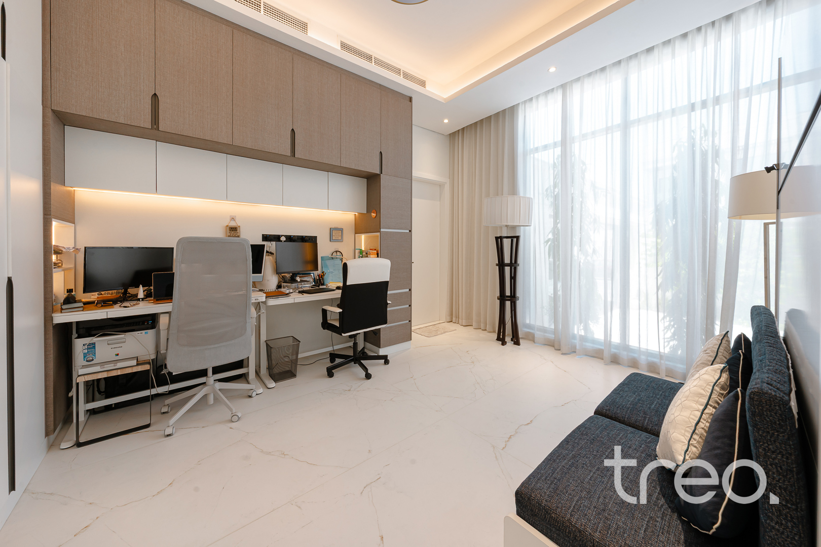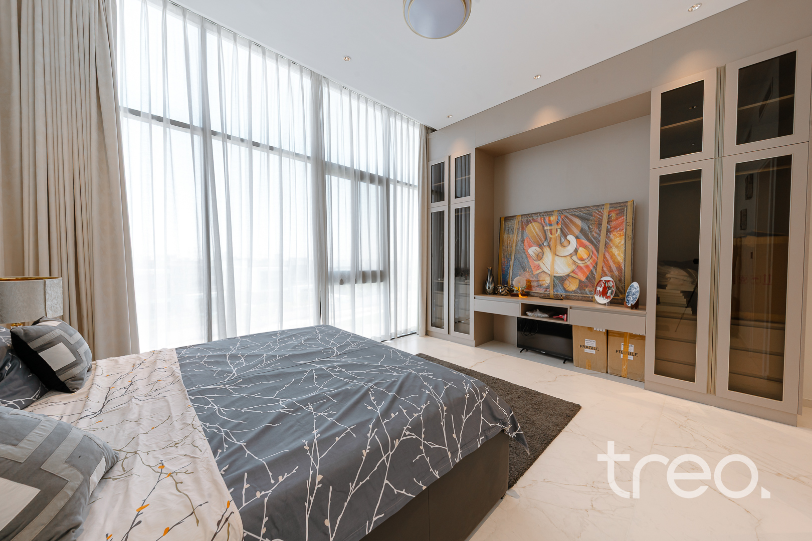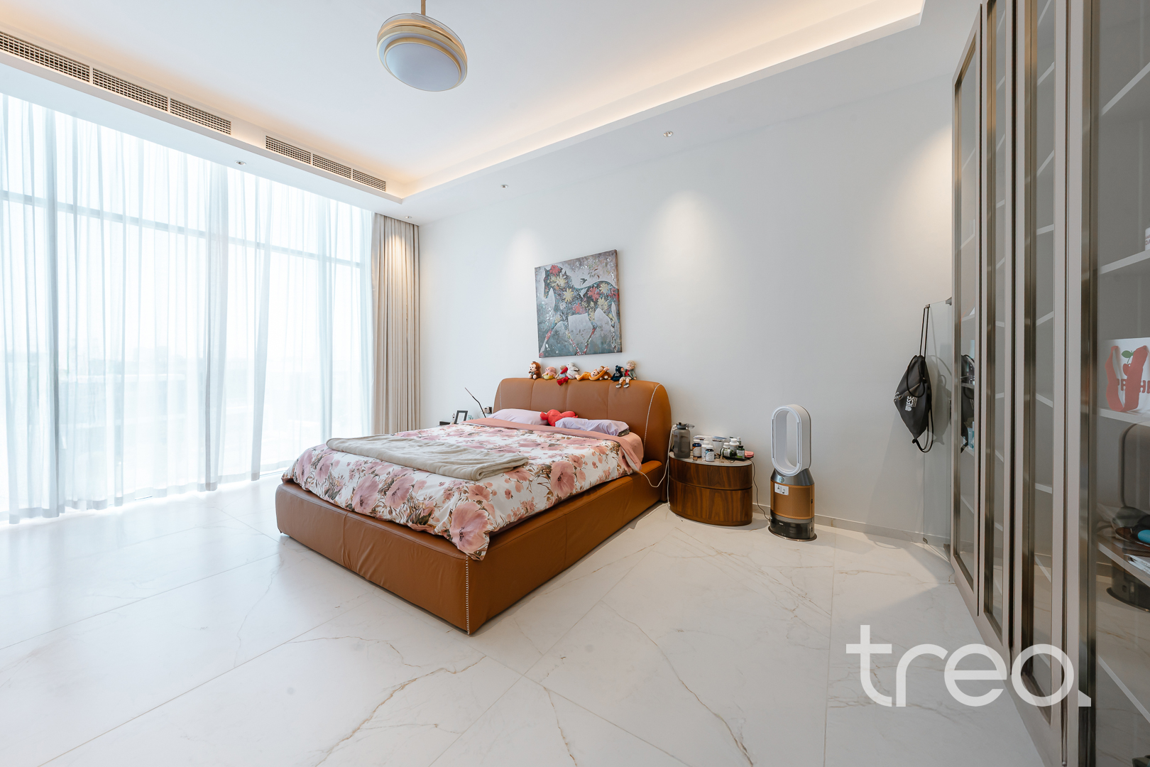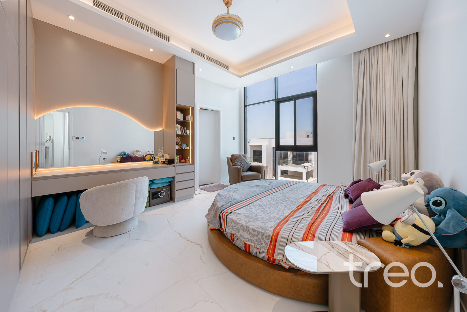 As you enter this villa, you immediately see the double height ceilings leading into the living, dining area and Italian fully fitted kitchen. Additional features include a double garage that accommodates two cars, a chef's kitchen, a maid's room, a driver's room and one downstairs en-suite bedroom. Upstairs, there are 5 en-suite bedrooms with built-in wardrobes and private balconies with access from a private elevator. Situated on a spacious 8,200 sq.ft plot approximately, which backs directly onto the brand new park offering various amenities, this villa comes with a private 11m infinity pool.
