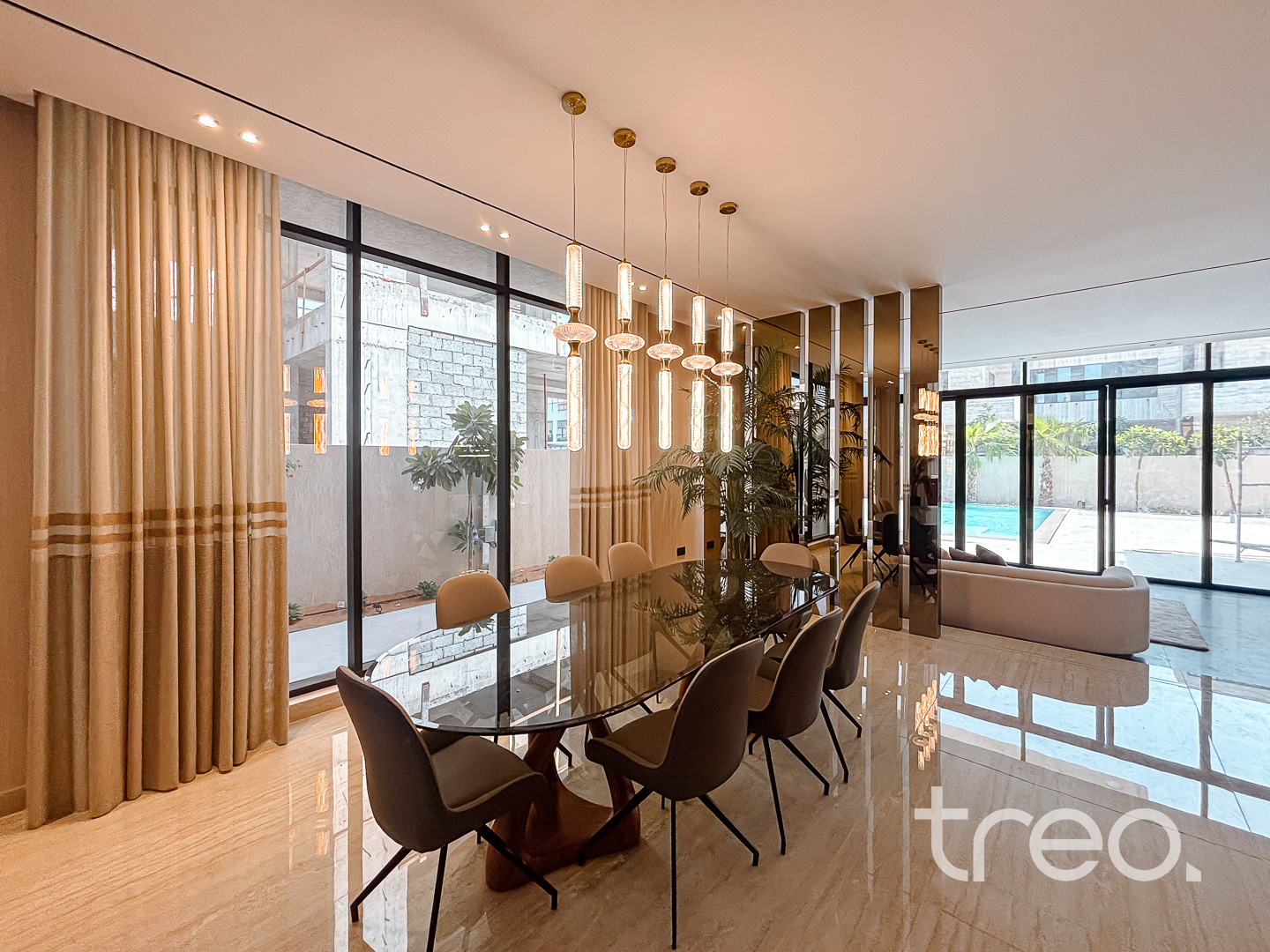 This modern 6 bedroom triplex is new to the market property which comes with 6 fully fitted bedroom with en-suites, chef and show kitchens, maids and driver rooms, elevator, infinity pool and an open plan expansive living and dining area. With 5m double height ceilings in the living room and floor to ceiling windows allows ample natural light to enter the living room and dining. All Bedrooms are spread across the 3 floors with one bedroom on the ground floor, 6 bedrooms between the first and second floor which all connect to the inbuilt elevator allowing for easy of access. As a specialist in Jumeirah Park, I have multiple custom built options available to view.