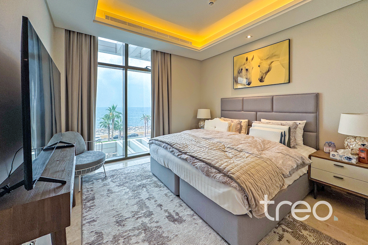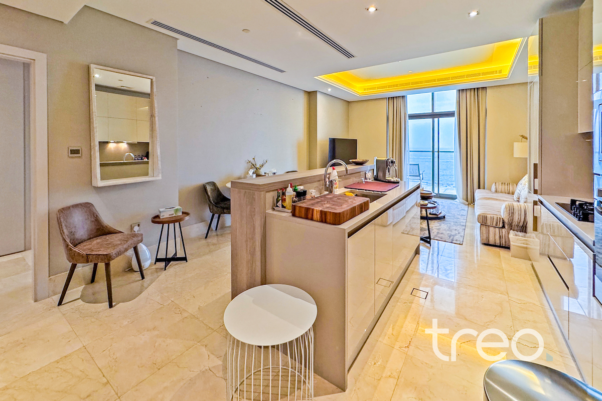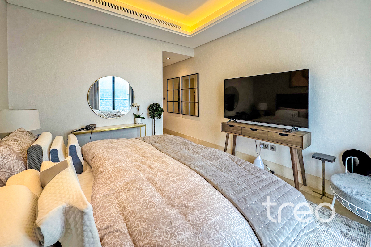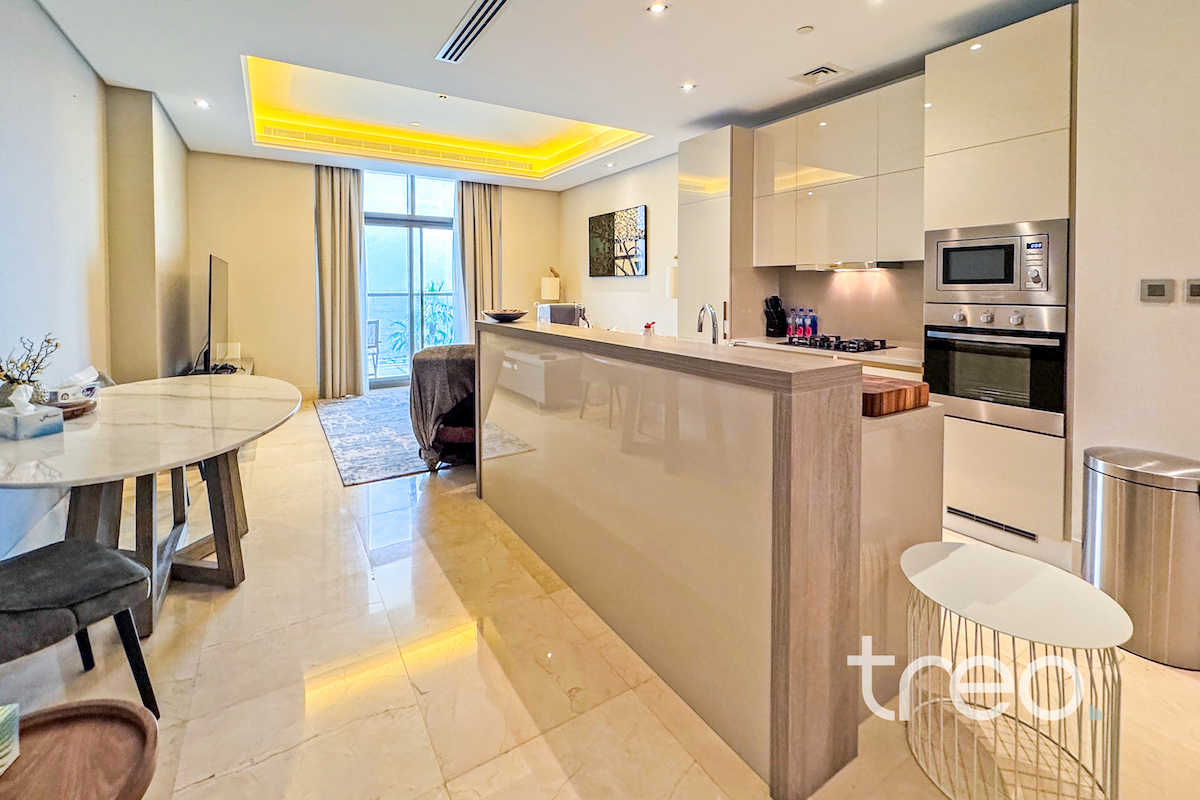This two bed apartment is excellently located in one of the most sought after communities, The 8, Palm Jumeirah. As you enter the property you are greeted by bright open plan living area with a fully equipped kitchen and island. This leads onto the balcony with full sea views. Both of the bedrooms are ensuite with built-in wardrobes. The property is complete with a spacious living room, guest bathroom and maids room. It's prime location with easy access to key amenities, such as a fully equipped gym and community pool, makes it the perfect property for those who enjoy luxury and comfort while still having world-class dining, shopping and entertainment at their doorstep.