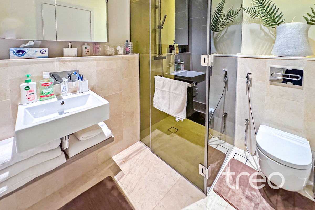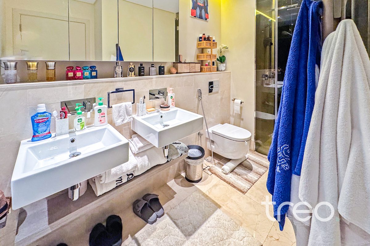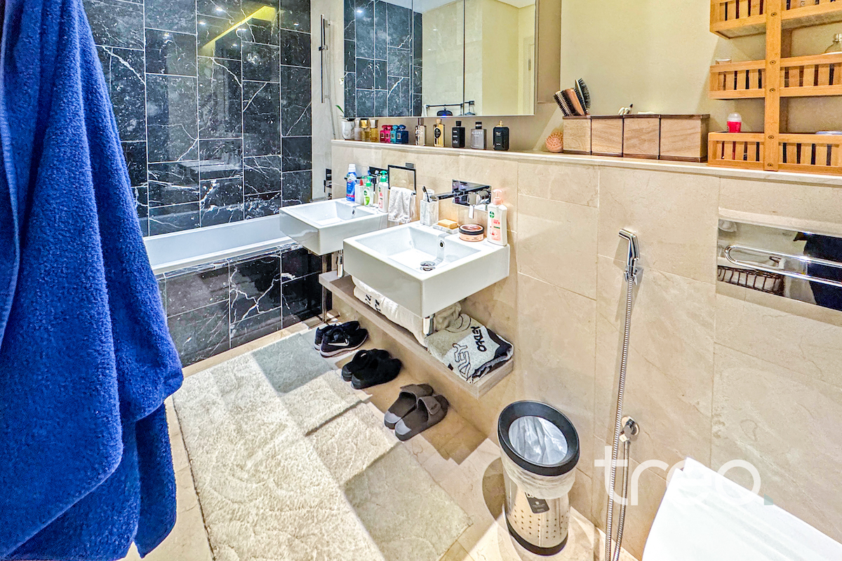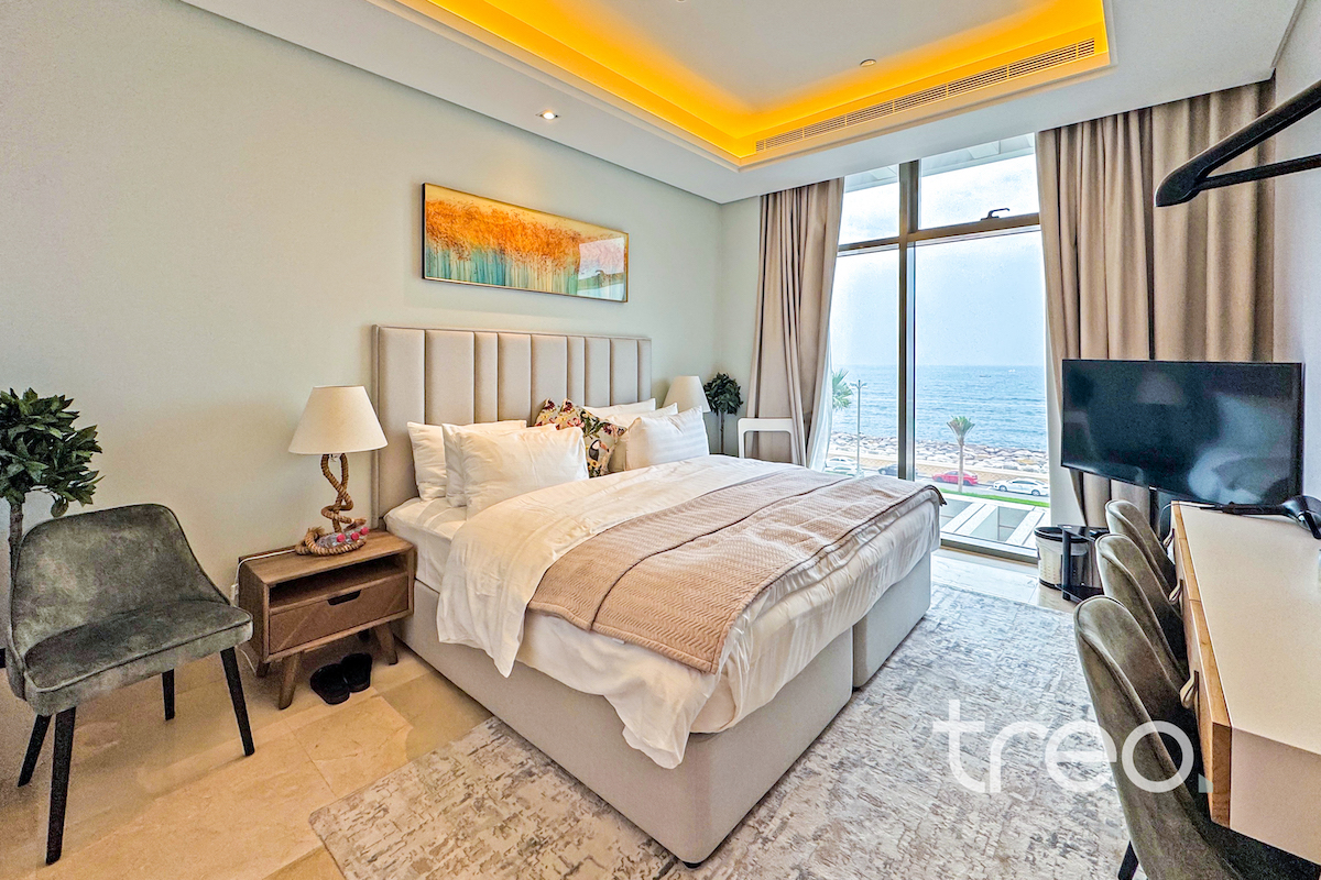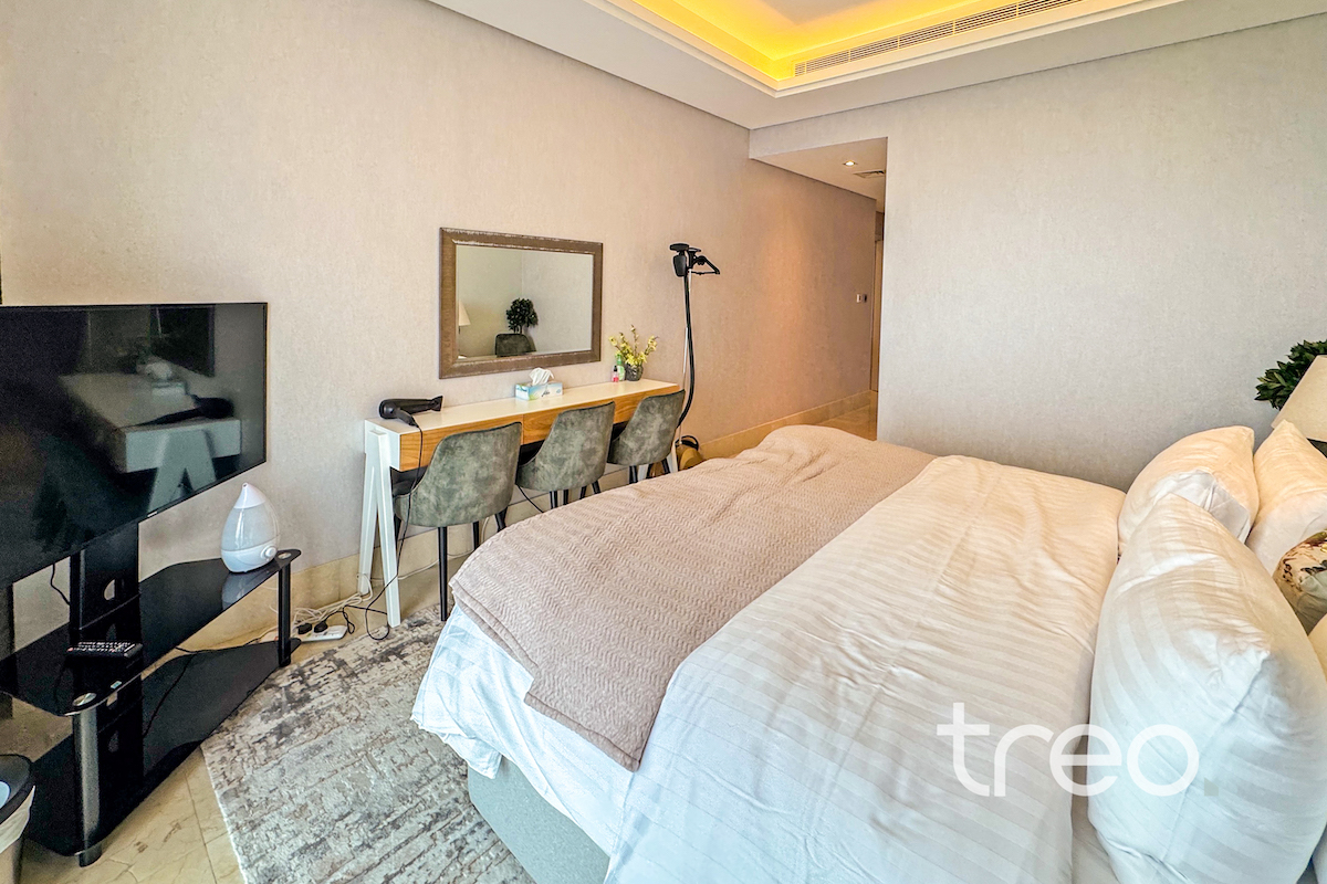 This two bed apartment is excellently located in one of the most sought after communities, The 8, Palm Jumeirah. As you enter the property you are greeted by bright open plan living area with a fully equipped kitchen and island. This leads onto the balcony with full sea views. Both of the bedrooms are ensuite with built-in wardrobes. The property is complete with a spacious living room, guest bathroom and maids room. It's prime location with easy access to key amenities, such as a fully equipped gym and community pool, makes it the perfect property for those who enjoy luxury and comfort while still having world-class dining, shopping and entertainment at their doorstep.
