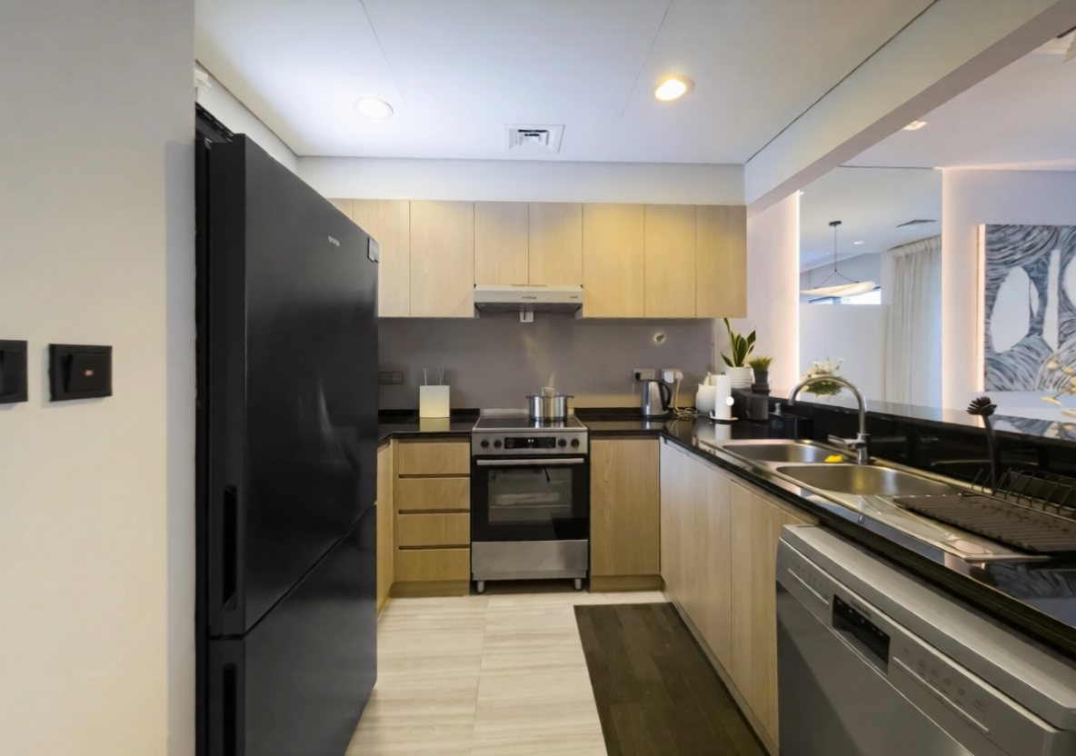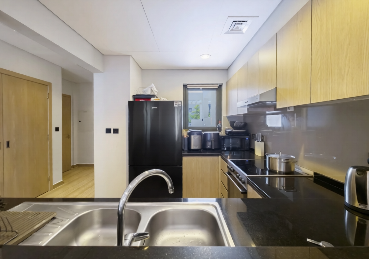 This well-maintained apartment features a bright open-plan living and dining area, complemented by modern furnishings and elegant finishes throughout. The fully equipped kitchen comes with quality appliances and ample storage space, making it ideal for everyday living. The master bedroom includes built-in wardrobes and an en-suite bathroom, while the two additional bedrooms are generously sized with plenty of natural light. A private balcony offers relaxing community views, perfect for unwinding after a long day.