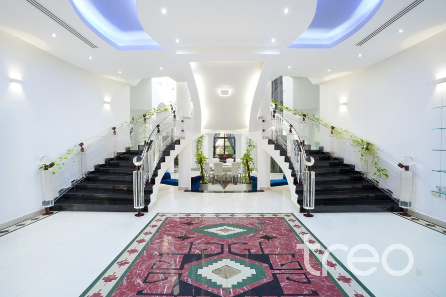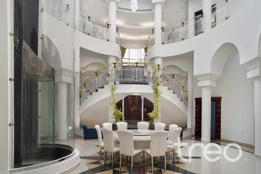 Lake-Facing Villa in Emirates Hills | 8+ Bedrooms Luxury lake-facing villa in Sector E, Emirates Hills. Set on 18,553 sq. ft. with 16,000 sq. ft. built-up area, this 4-level home offers 8-bedrooms, 5 living areas, private pool, rooftop garden with BBQ, cinema room, sauna, steam room, and master suite with jacuzzi. Unique cave-style dining room with waterfall feature. Fully equipped kitchen, elevator, duct lift, and separate staff quarters. Exceptional privacy with stunning lake views.