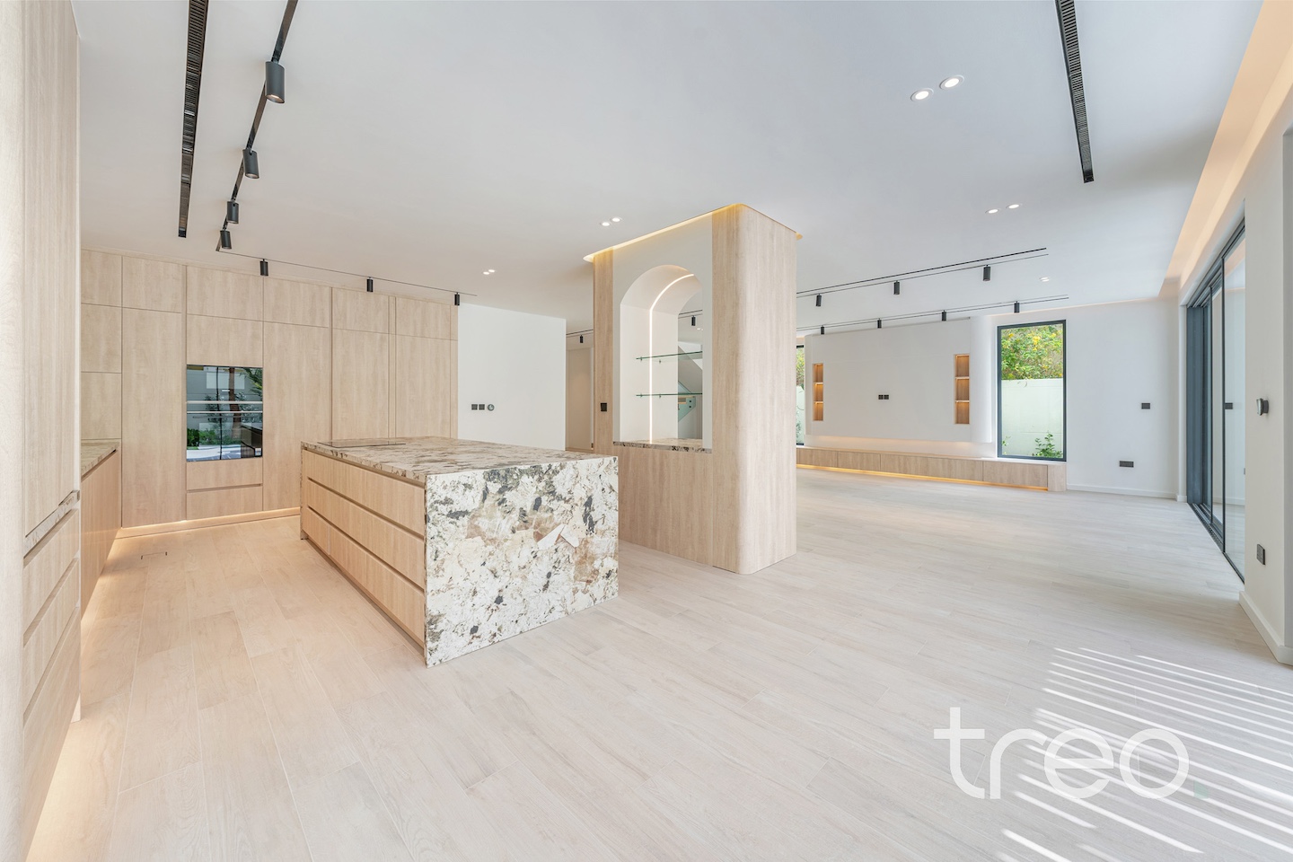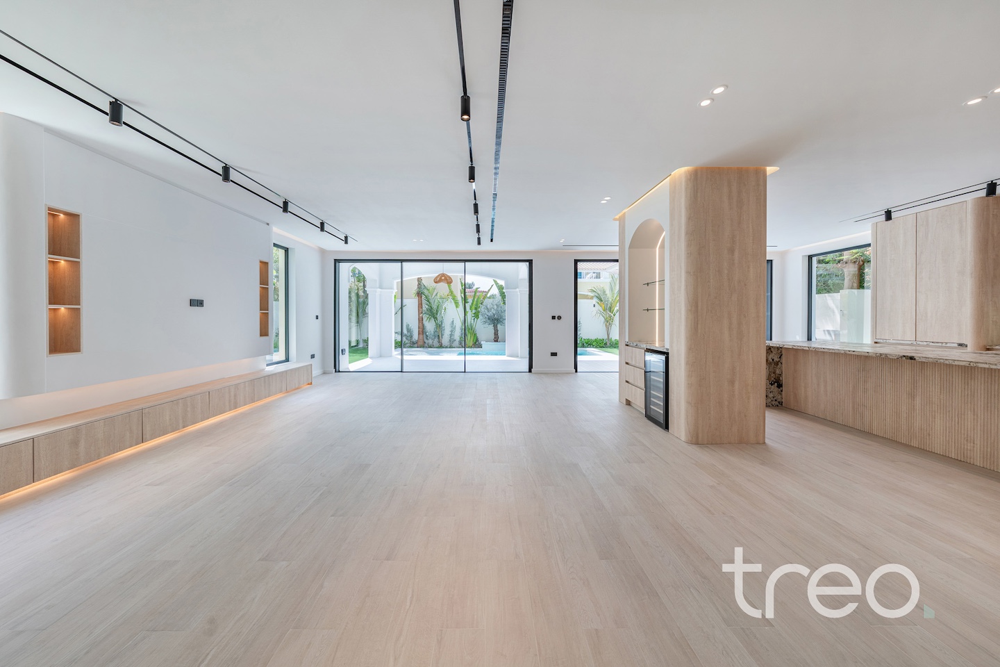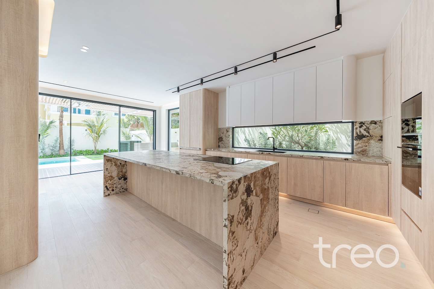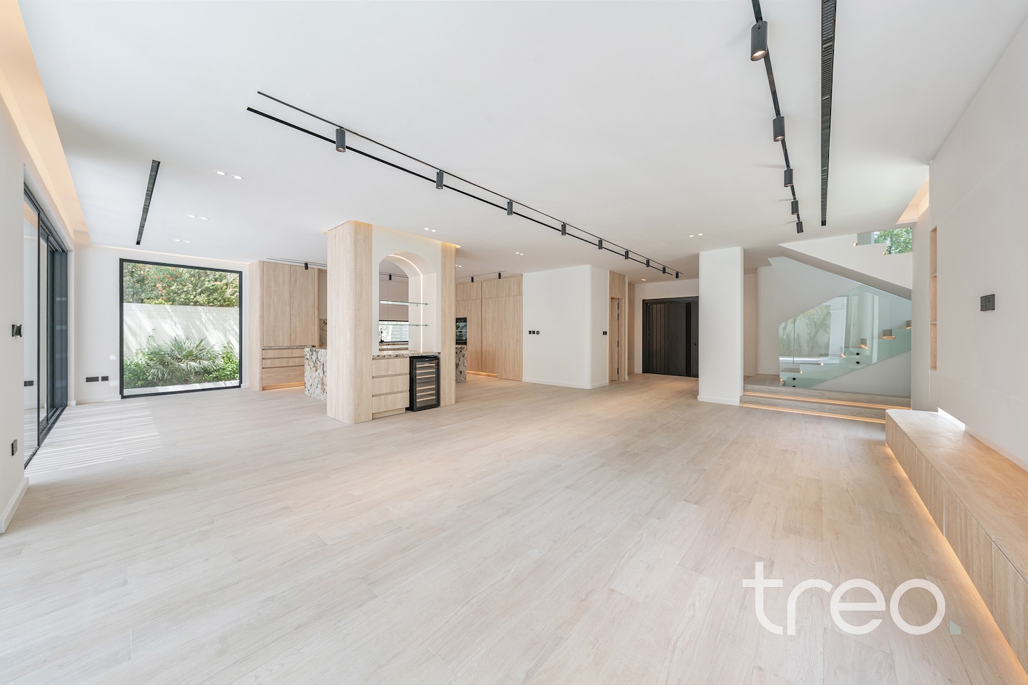If you are looking for one of the best renovated 4-bedrooms in Jumeirah Park, come see this home. The villa layout has been fully remodelled to a larger open plan living and dining space with a fully integrated Siemens island kitchen. Additionally, this villa has floor-to-ceiling windows, extended ceilings, TV media wall, a built-in bar, a maid's room, Porcelanosa tiles and Bagno appliances throughout. Upstairs has 4 bedrooms with bespoke built-in wardrobes, and the master bedroom has its own private balcony and walk-in closet. The garden has been fully landscaped with an additional terrace, a BBQ area, a private swimming pool, and an additional rock-wall seating area.