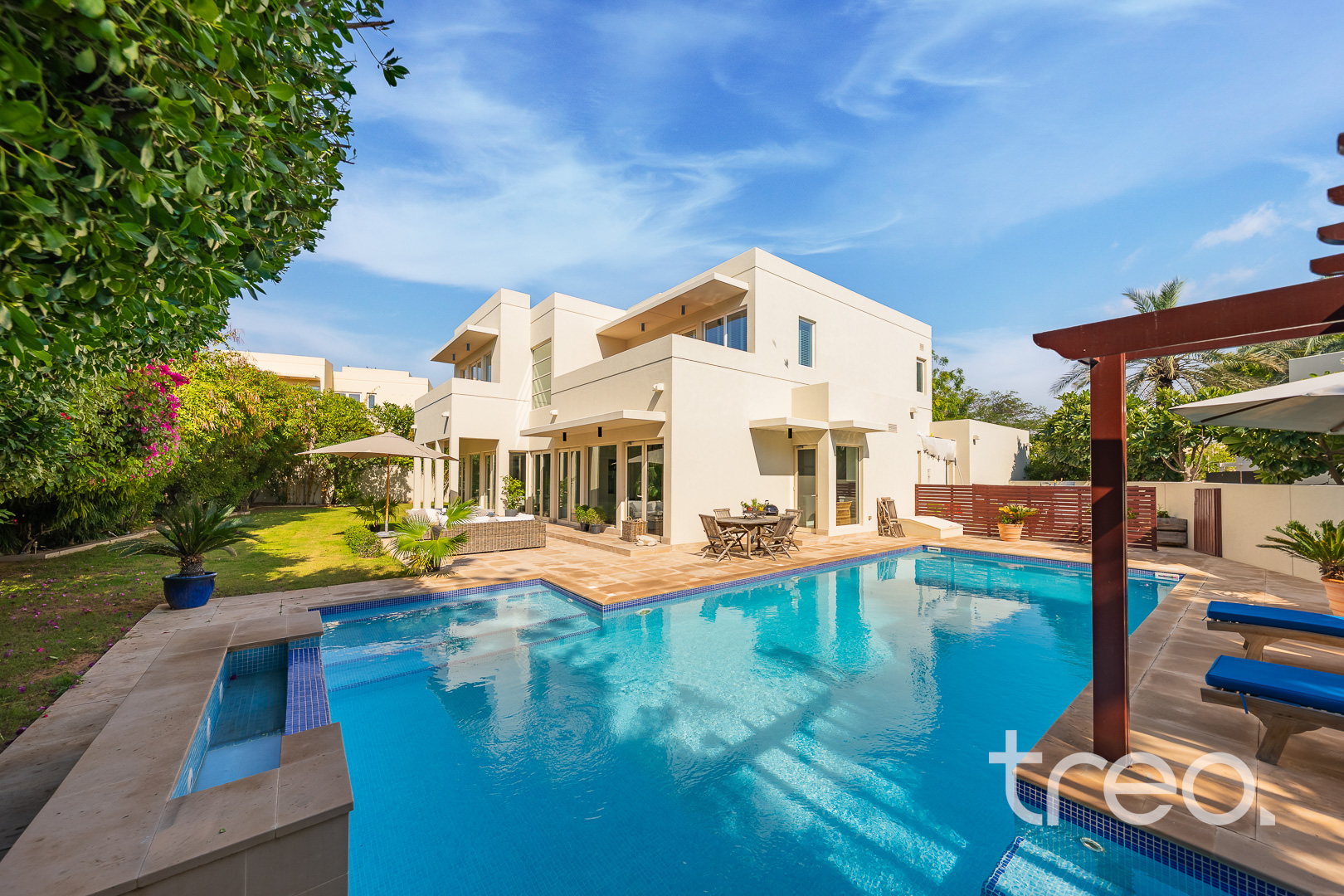 Treo Homes proudly presents this exceptional fully upgraded 5-bedroom villa in the highly sought-after Saheel community of Arabian Ranches, offered vacant on transfer. Set on a beautifully landscaped plot, this stunning family home features a private swimming pool and lush mature gardens, creating a private setting ideal for both entertaining and relaxed family living. The villa has been thoughtfully upgraded throughout, offering bright open-plan living and dining areas, a modern upgraded kitchen, and generously sized bedrooms. Seamless indoor-outdoor flow enhances the overall living experience, making this home perfect for modern family living.