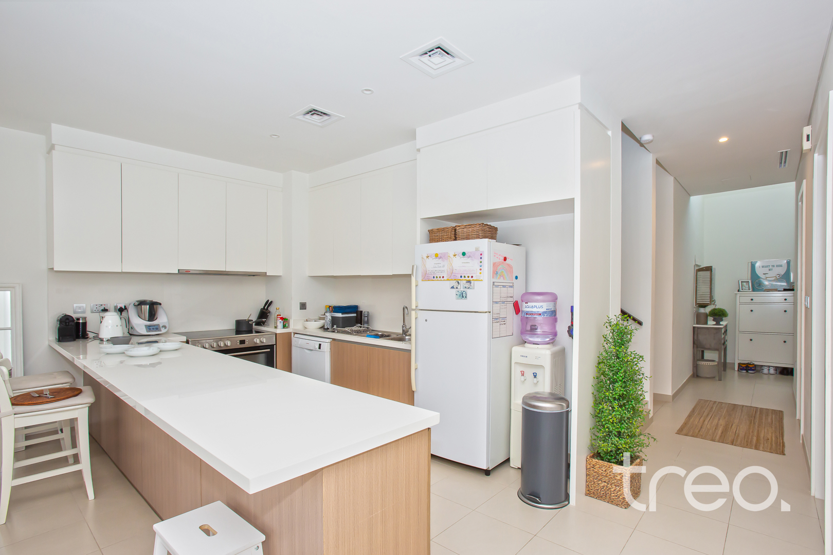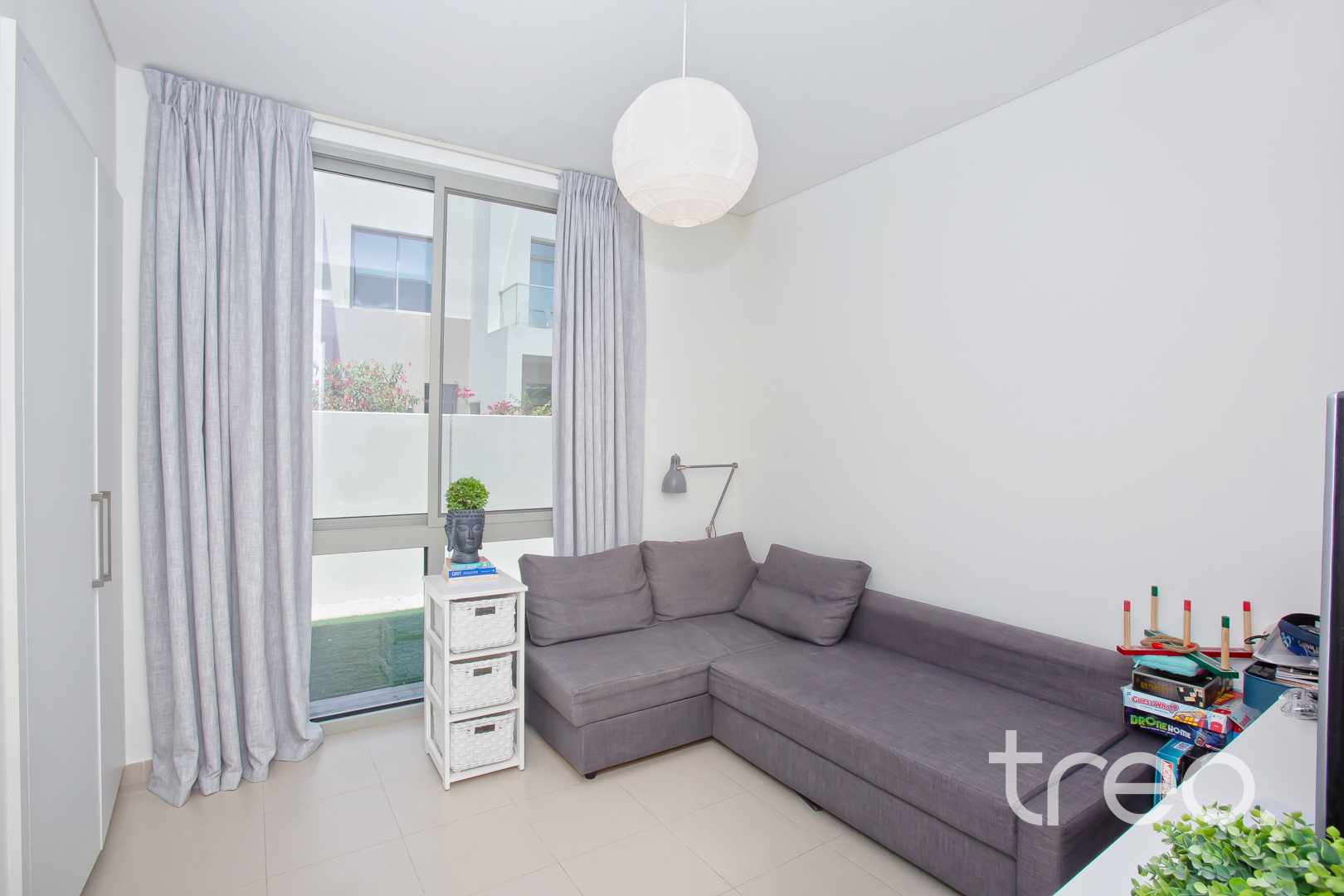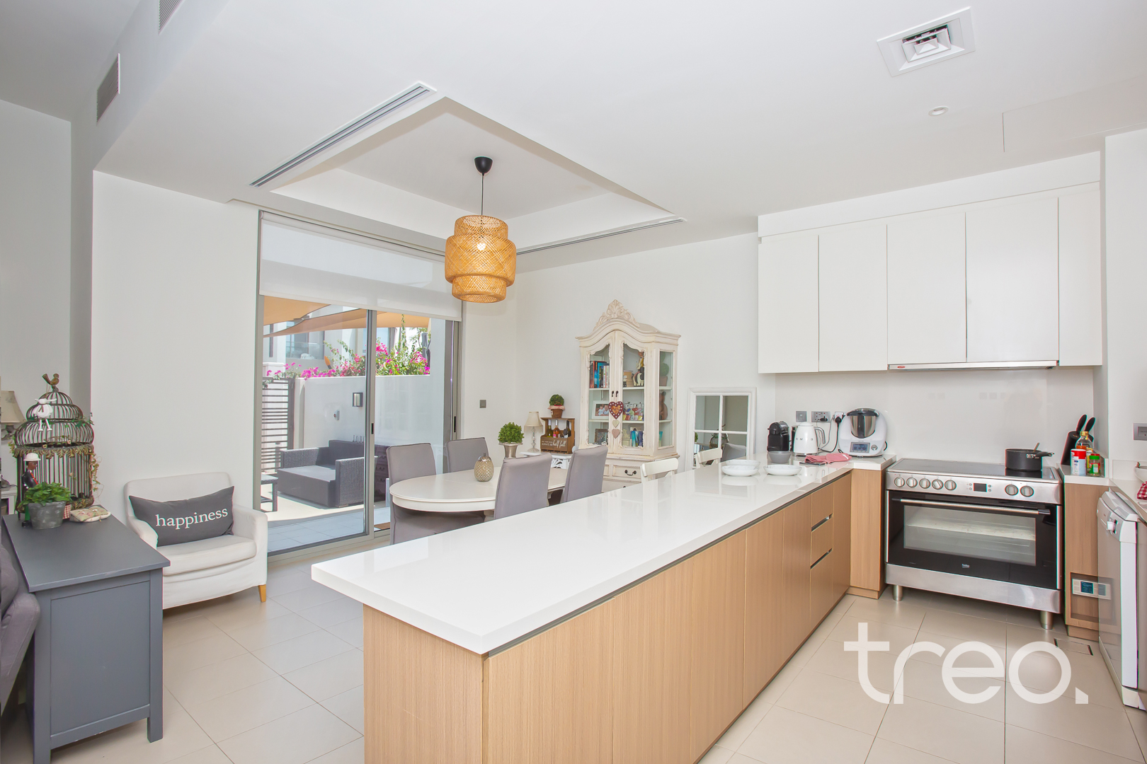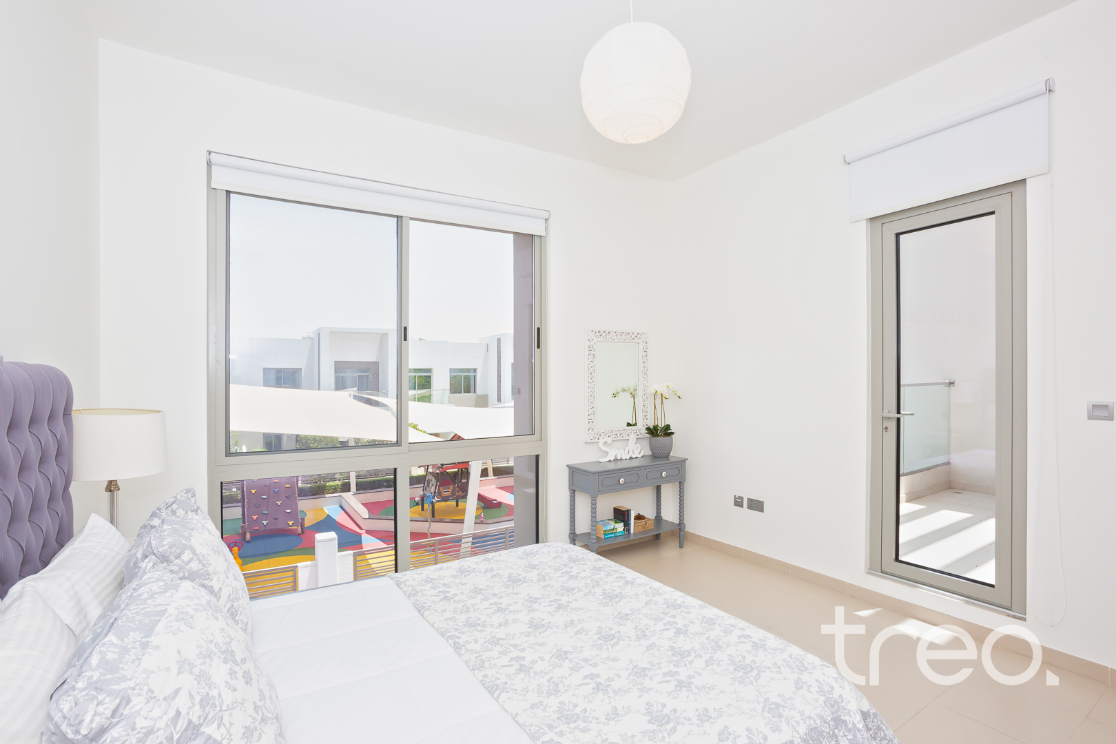 The entrance leads into a bright open-plan living and dining area with a seamless flow to the garden. The open kitchen sits alongside the living space, ideal for everyday family living and entertaining. A ground floor bedroom offers flexibility for guests or a home office. Upstairs features three well-sized bedrooms, including the master with en-suite, plus a shared family bathroom. Corner plot location provides extra outdoor space and privacy. Reem offers pools, parks, and easy access to schools, Ranches Souk, and main roads.