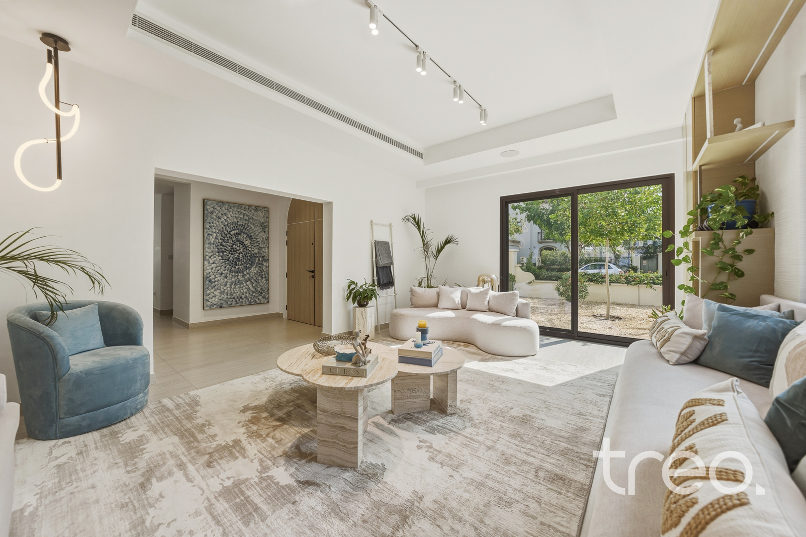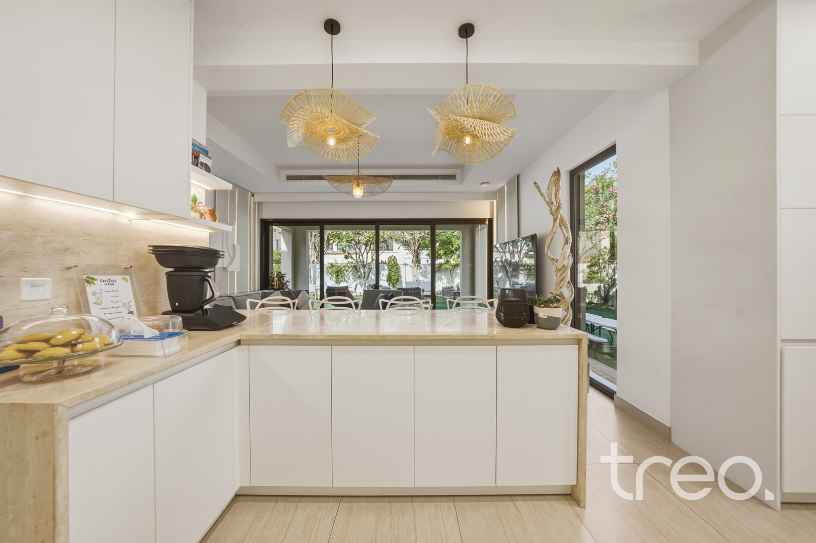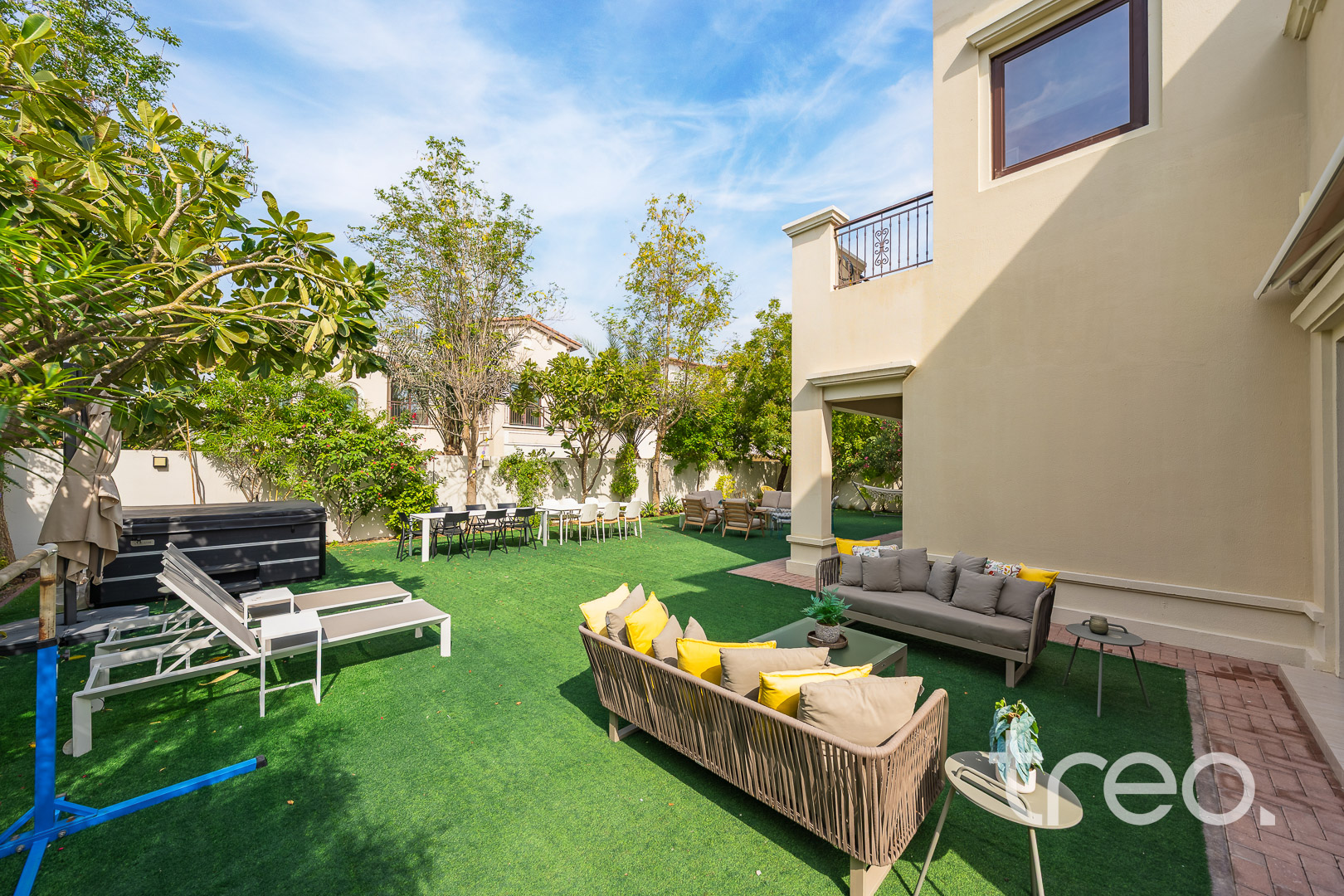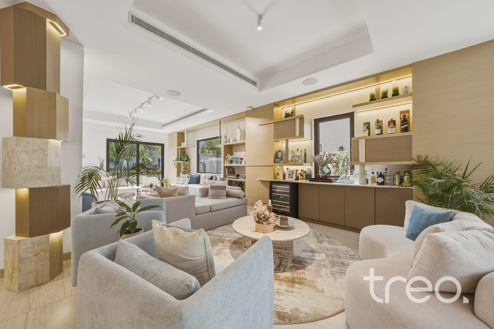 The property features a spacious open-plan layout, centred around a contemporary entertainment kitchen, ideal for both everyday living and hosting guests. Every detail has been carefully considered, with custom-designed furniture tailored specifically for the home, alongside high end finishes and fittings throughout. The villa is fully equipped with smart home integration, offering convenience and seamless control. Positioned in a quiet internal location, the home benefits from a bright and airy setting, enhancing the sense of space and natural light. Sitting on a generous 6,888 sq.ft plot, the outdoor area provides ample room for entertaining, making it perfect for social gatherings or relaxed family living.