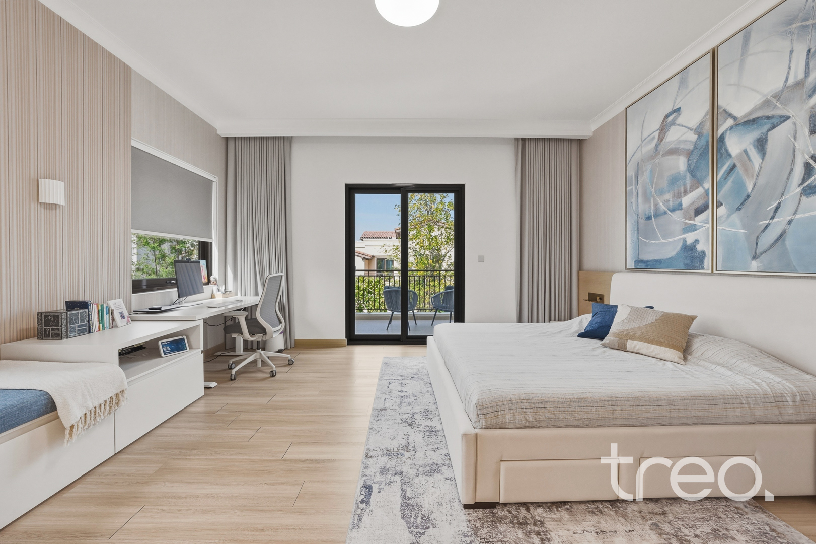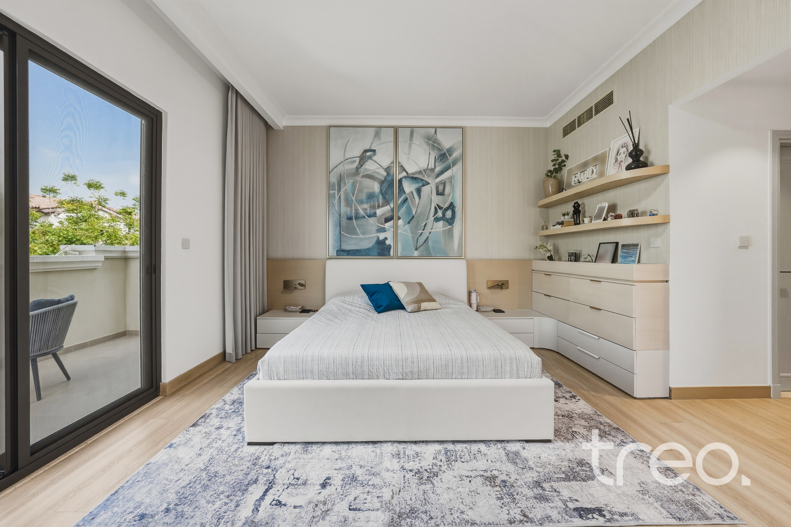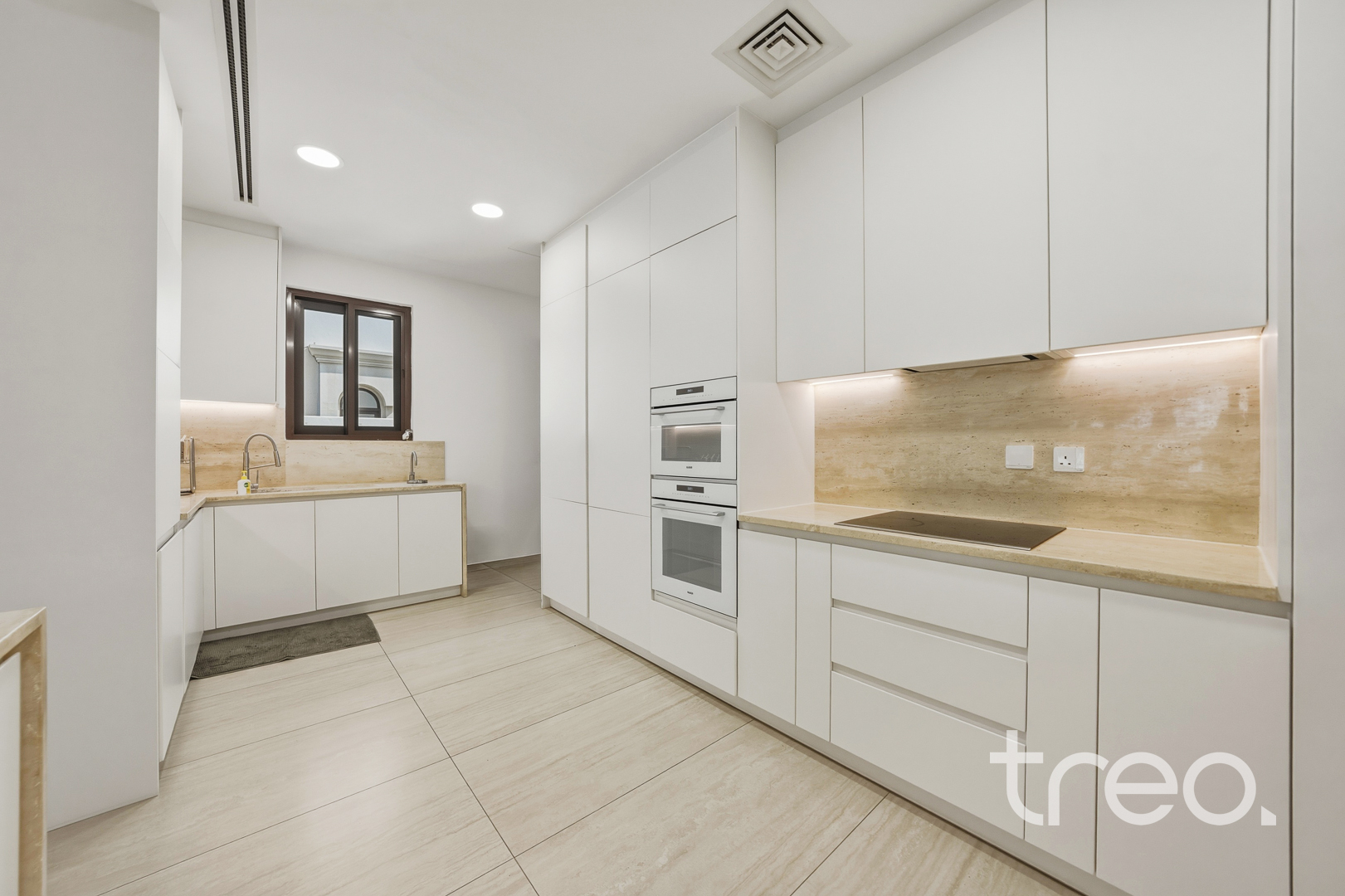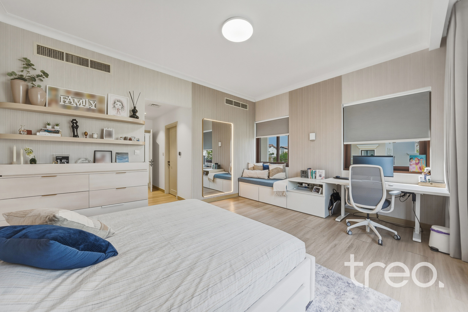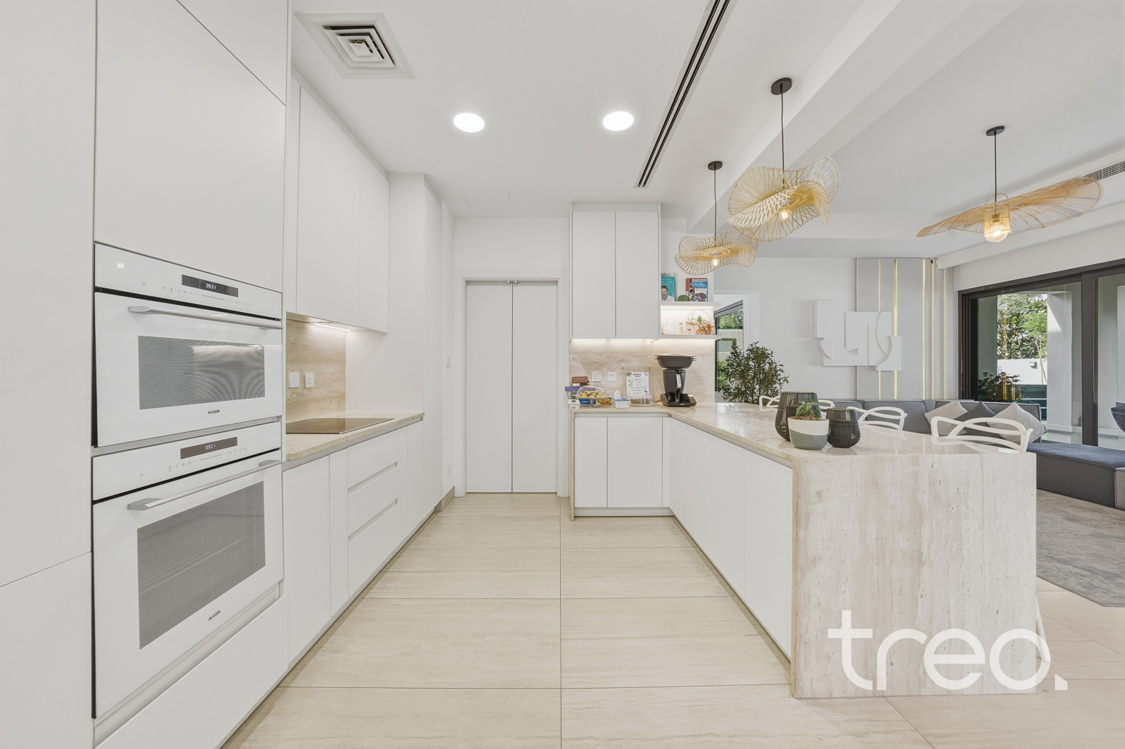 The property features a spacious open-plan layout, centred around a contemporary entertainment kitchen, ideal for both everyday living and hosting guests. Every detail has been carefully considered, with custom-designed furniture tailored specifically for the home, alongside high end finishes and fittings throughout. The villa is fully equipped with smart home integration, offering convenience and seamless control. Positioned in a quiet internal location, the home benefits from a bright and airy setting, enhancing the sense of space and natural light. Sitting on a generous 6,888 sq.ft plot, the outdoor area provides ample room for entertaining, making it perfect for social gatherings or relaxed family living.