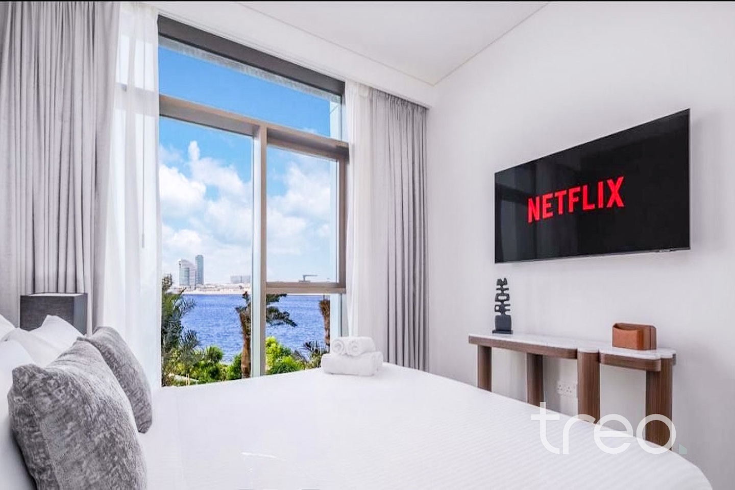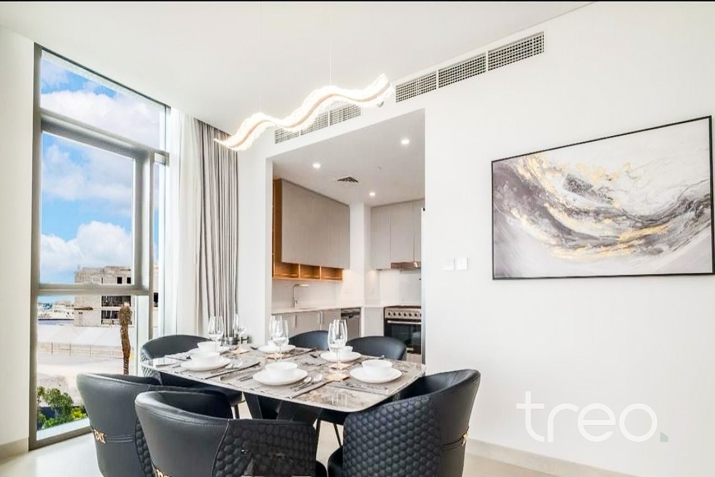 Enjoy waterfront living in Creek Harbour with this beautifully presented 3-bedroom plus maid’s apartment, offering 4 bathrooms, stunning sea and skyline views, and modern furnishings throughout. The apartment features a bright open-plan living and dining area with floor-to-ceiling windows, leading to a private balcony overlooking the water. All bedrooms are well-sized with built-in wardrobes, while the master bedroom includes an en-suite bathroom and impressive views. A separate maid’s room adds extra convenience. Finished to a high standard, the property includes a fully equipped modern kitchen and stylish interiors.