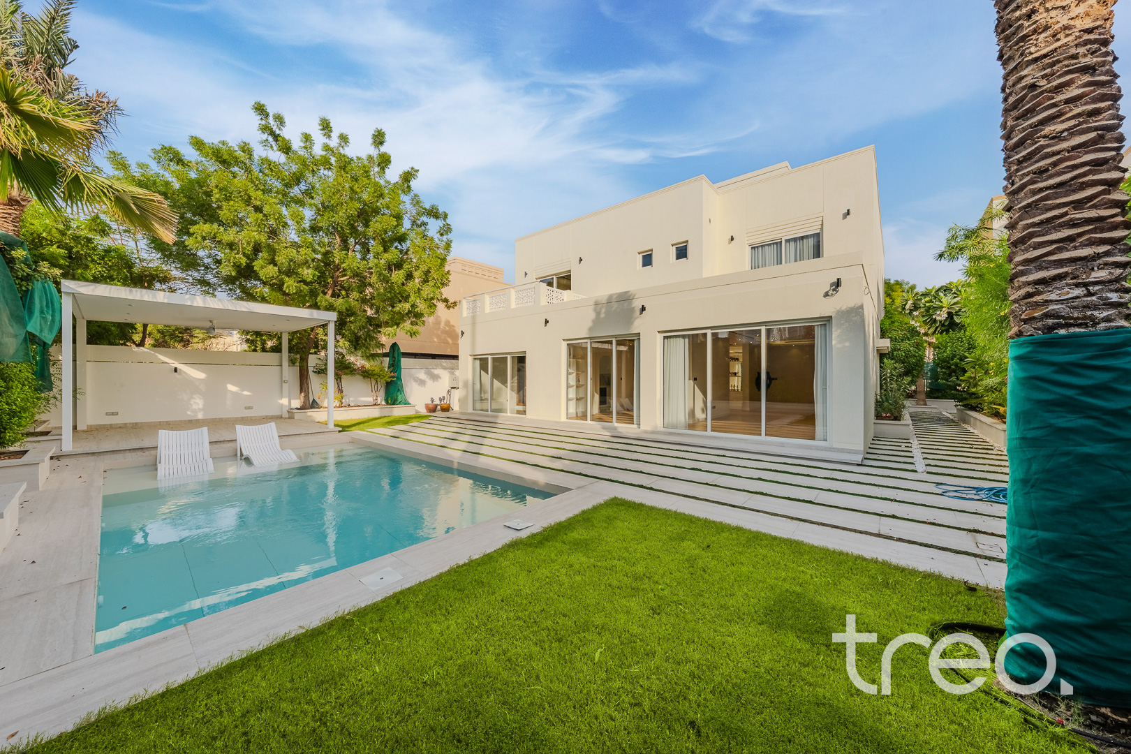 This beautifully extended villa blends luxury with modern convenience, featuring an interior elevator and five spacious ensuite bedrooms. A private swimming pool offers the perfect retreat, while a completely new AC system and triple-glass windows ensure year-round comfort. Smart home technology, brand-new electrical and plumbing, and premium finishes throughout add to the appeal. Enjoy Italian sanitary ware and tiles, elegant wooden parquet flooring, and a fully fitted kitchen with top-quality appliances. This is a truly rare villa, offering unique features and certainly not to be missed.
