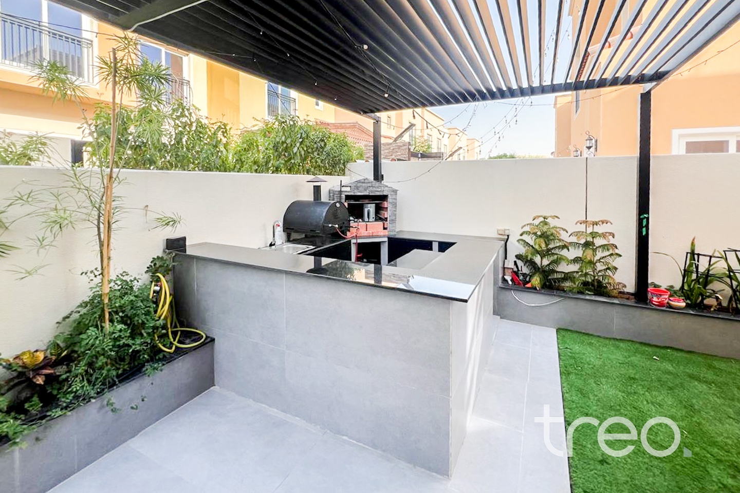 Treo homes is delighted to present this upgraded townhouse within the ever popular Amaranta, Villanova. Situated within walking distance to the restaurant & main amenities, its perfect for families & investors alike. The current owner has gone the extra mile in upgrading the rear garden, adding sq ft by extending the gate and installing a giant pergola for those relaxing winter evenings in the sunset. With a bbq area and seating also, this space is already perfect. Inside we have 3 bedrooms upstairs with a master en-suite & also a 4th bedroom downstairs. The separate maids room also has its own shower. This unit is vacant on transfer, with no tenants to deal with for the new owners.