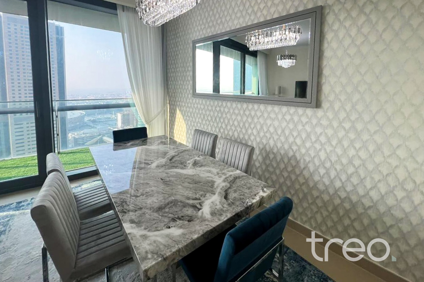 Discover city living in this fully furnished 2-bedroom apartment, just a 6-minute walk from Dubai Mall. Set on a high floor, it boasts stunning sea and city views. Designed for comfort and convenience, the home features two spacious bedrooms with built-in wardrobes, three modern bathrooms, a fully fitted kitchen, separate laundry room, and one covered parking space. Enjoy chiller-free living and access to premium amenities including a swimming pool. Perfectly combining style, location, and lifestyle, this residence is an exceptional choice in the heart of Dubai.