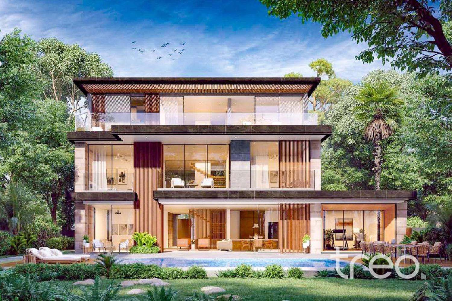 Green belt backing 5-bed Haven villa in Alaya 1, Tilal Al Ghaf. A quiet, private home with open green views, set within a gated community offering lagoon access, private beach, beach club, pools, gym and parks. Ideal for end users seeking comfort, privacy and an easy, high-quality lifestyle.