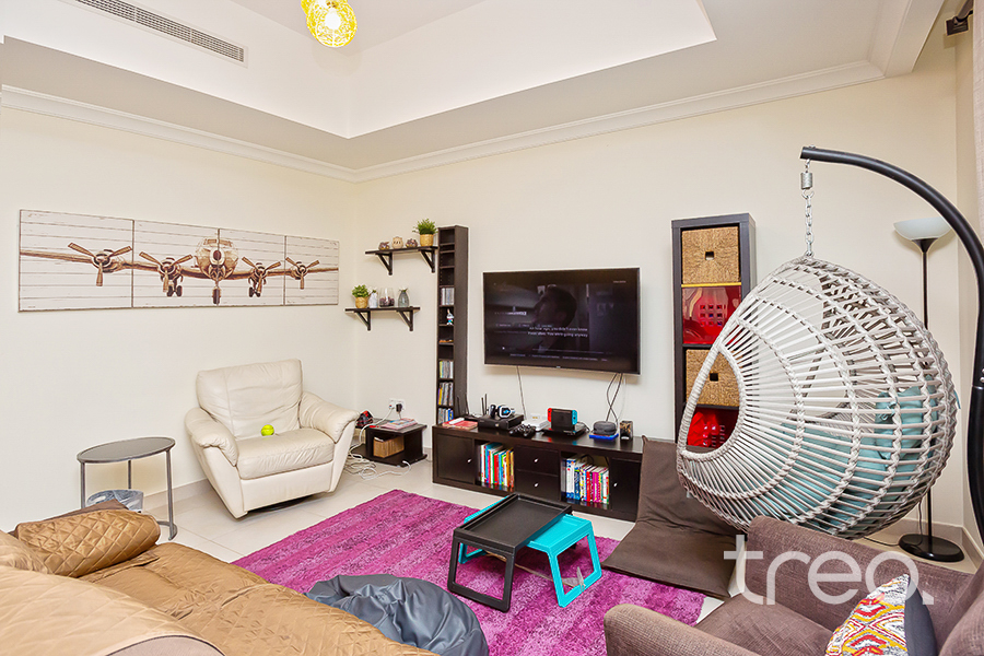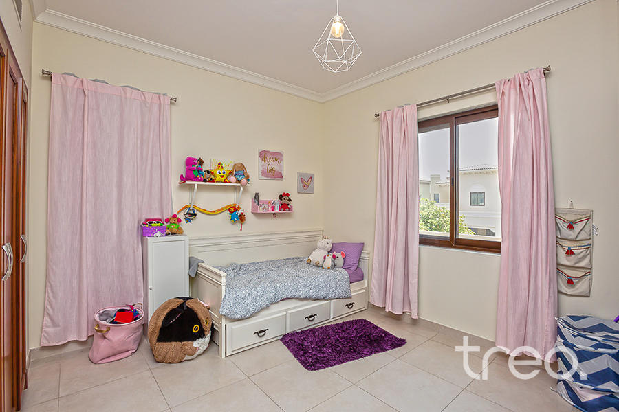 The ground floor offers one of the largest living spaces for 3Bedrooms in the community. Two doors leading to the garden and highened ceilings promotes a lot of natural light. A secluded kitchen offers options to extend and open. The ground floor offers a private maid's room. The first floor presents a small landing area leading to two bedrooms sharing a Jack/Jill style bathroom. Rooms sizes are really spacious with build in wardrobes. Finally a stunning main bedroom with high ceilings, walk in dresser, and stunningly kept bathroom summarises the floor. The garden is the main focal point of this house. A definite must see.