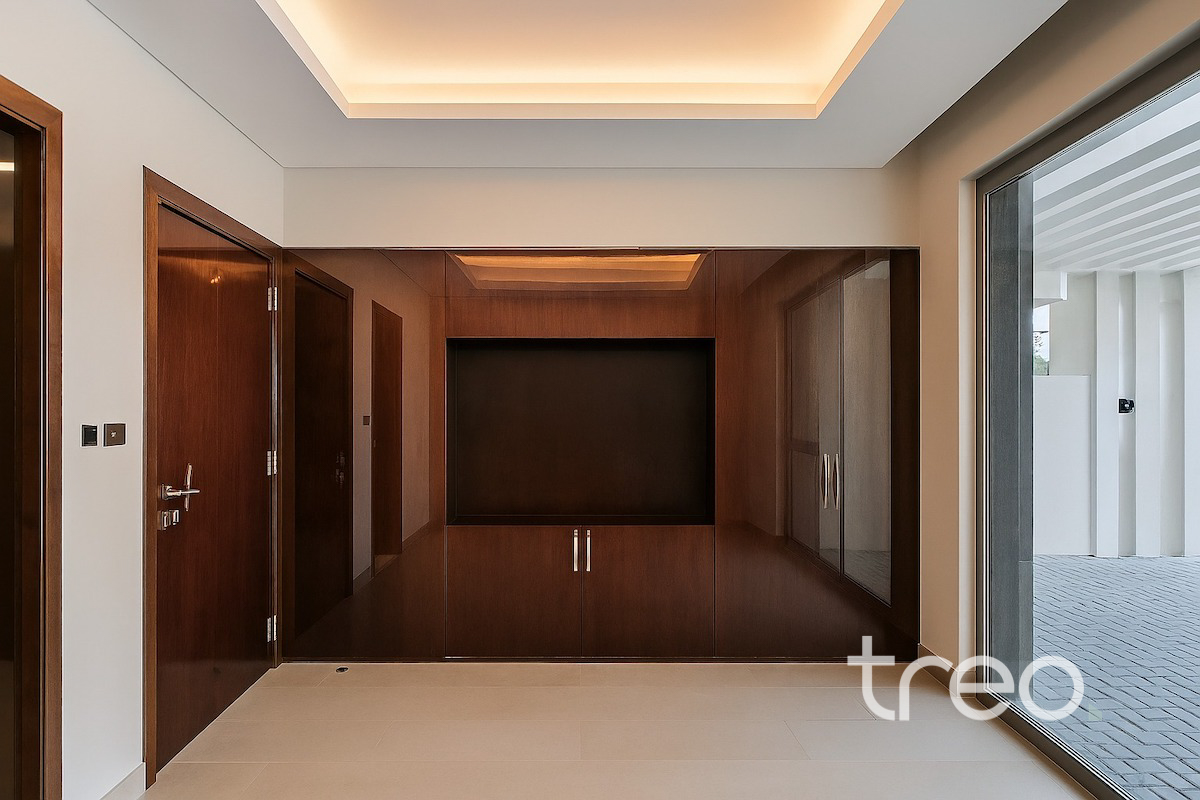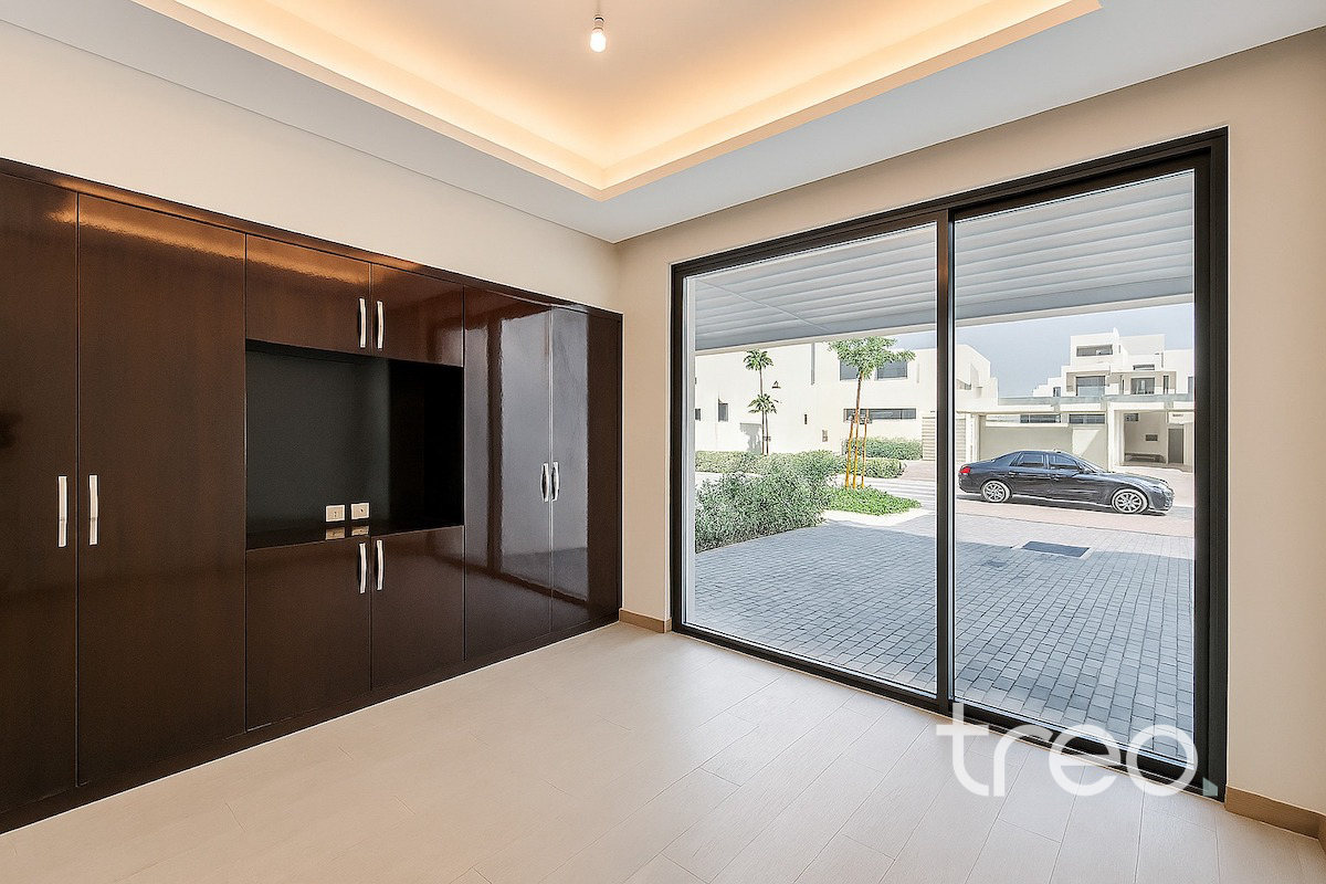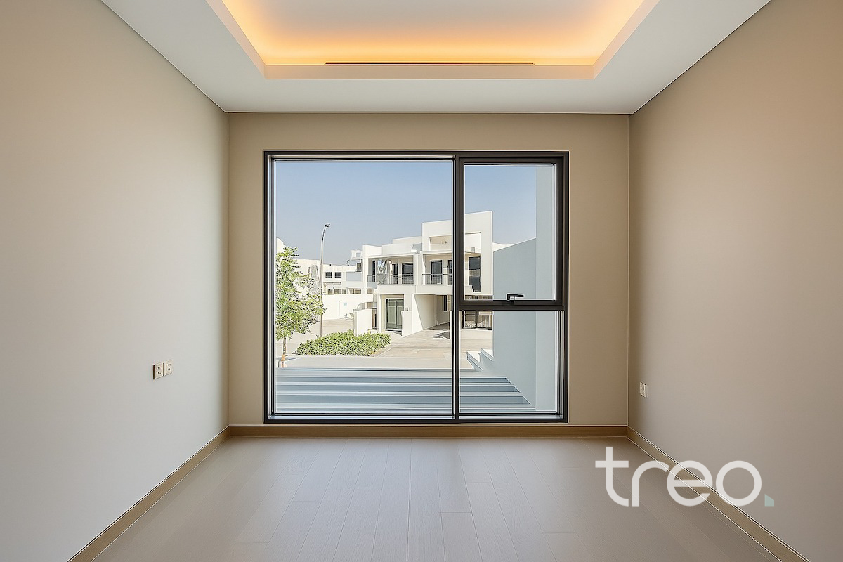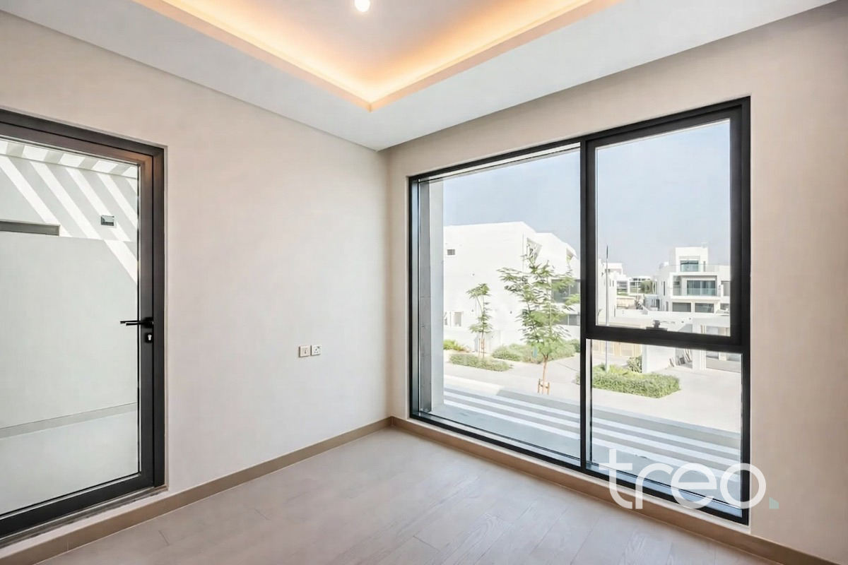 Discover this brand new 4-bedroom modern villa in the sought-after Belair Cluster, DAMAC Hills 1. Designed with sleek finishes and expansive floor-to-ceiling windows, the home is filled with natural light and offers stunning views of the championship golf course. Enjoy spacious living areas, a contemporary kitchen, and private outdoor space ideal for family living. Residents benefit from nearby parks, pools, gyms, schools, supermarkets, walking trails, Trump International Golf Club, and easy access to major roads. Perfect for families seeking luxury, comfort, and a prime golf community lifestyle appeal. Vacant and ready to move in.