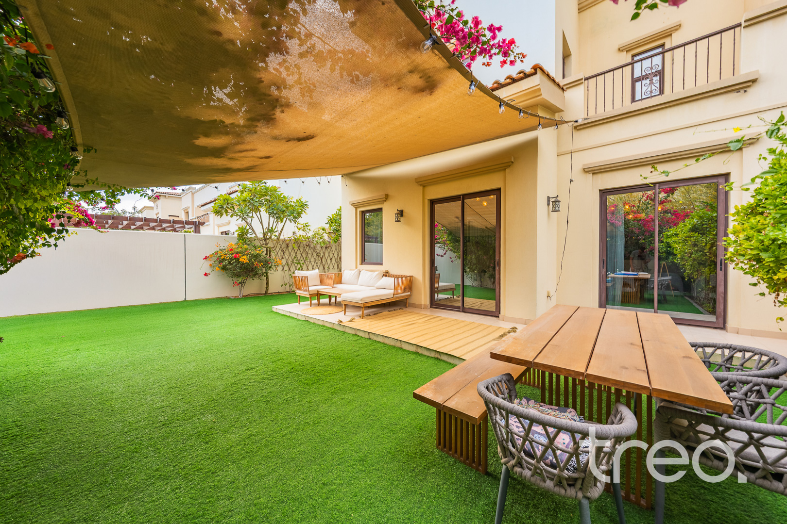 This beautiful 1E is the biggest and sought after layouts in Mira, situated in a quiet location with easy access to the entrance and close to all amenities. This stunning villa boasts an open-plan living/dining area that seamlessly connects to the kitchen. The study can be utilized as an office space or 4th bedroom. The outdoor area is equally impressive, with a large landscaped garden, perfect relaxing space for entertaining guests. The first floor offers a large landing area, two large guest bedrooms with a sharing a Jack & Jill bathroom. The master bedroom offers an en-suite and a large balcony overlooking a beautiful green area.