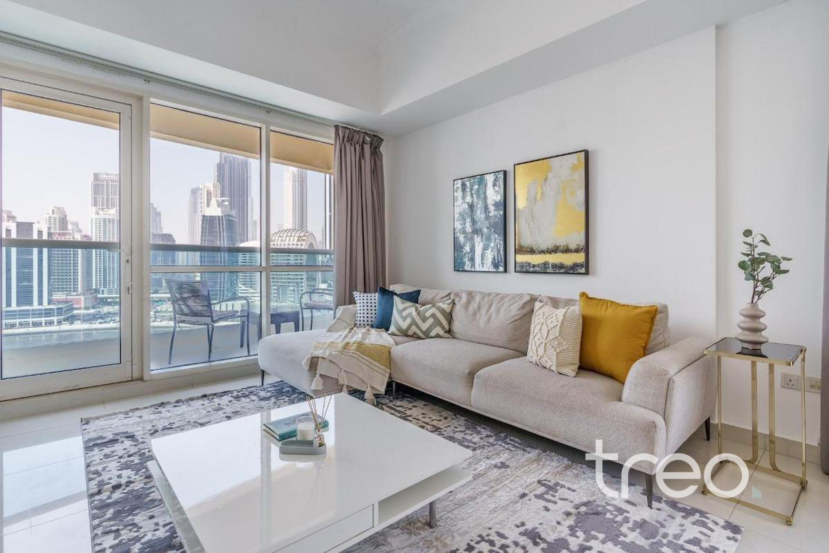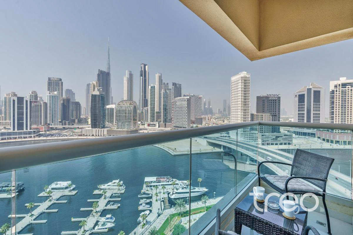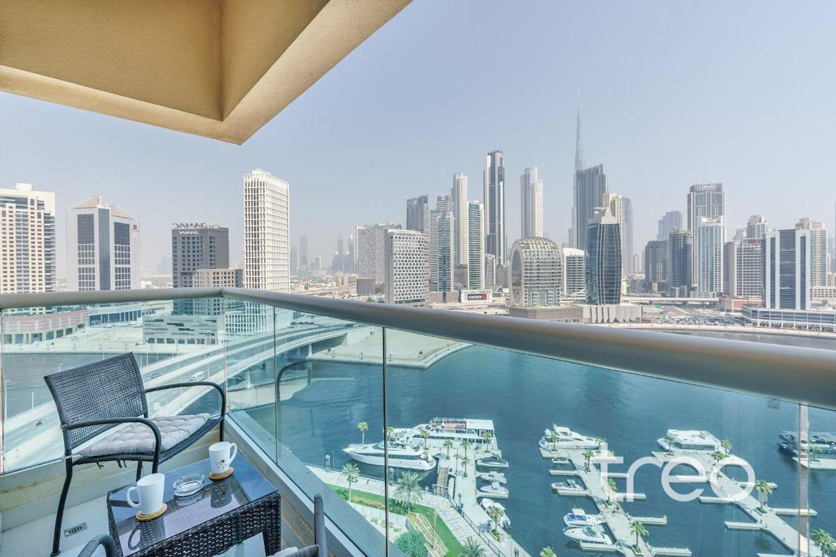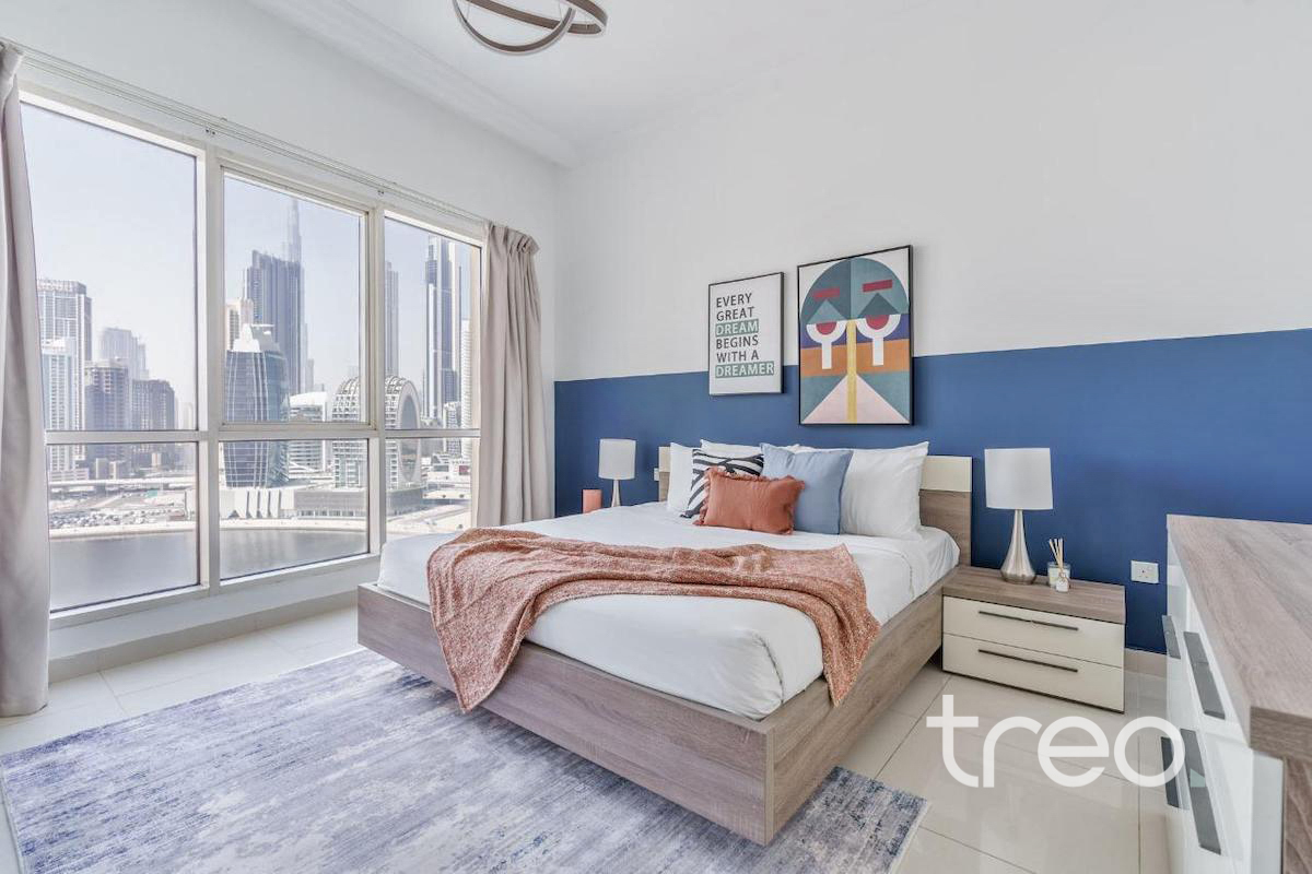 This contemporary one-bedroom apartment is ideally located in the heart of Business Bay, offering a perfect blend of modern living and iconic views. Thoughtfully designed with a spacious open-plan layout, the apartment features two sleek bathrooms. Floor-to-ceiling windows flood the space with natural light and frame stunning views of the Dubai Canal and the Burj Khalifa, creating an impressive backdrop day and night. The bedroom is generously sized with built-in wardrobes and a stylish en-suite bathroom. Residents benefit from a prime location with easy access to Downtown Dubai, major road links, dining, and leisure attractions