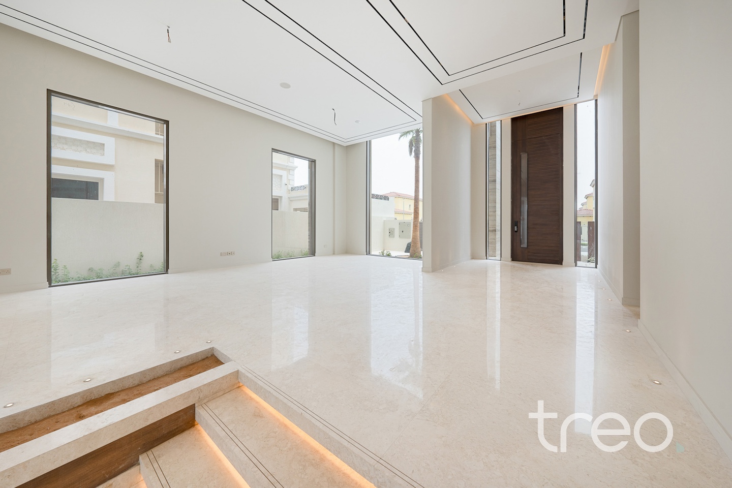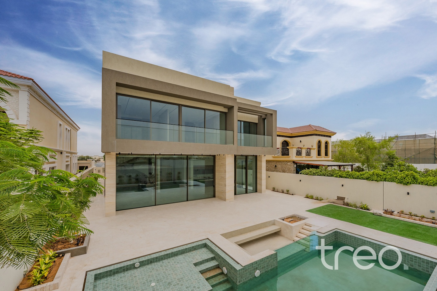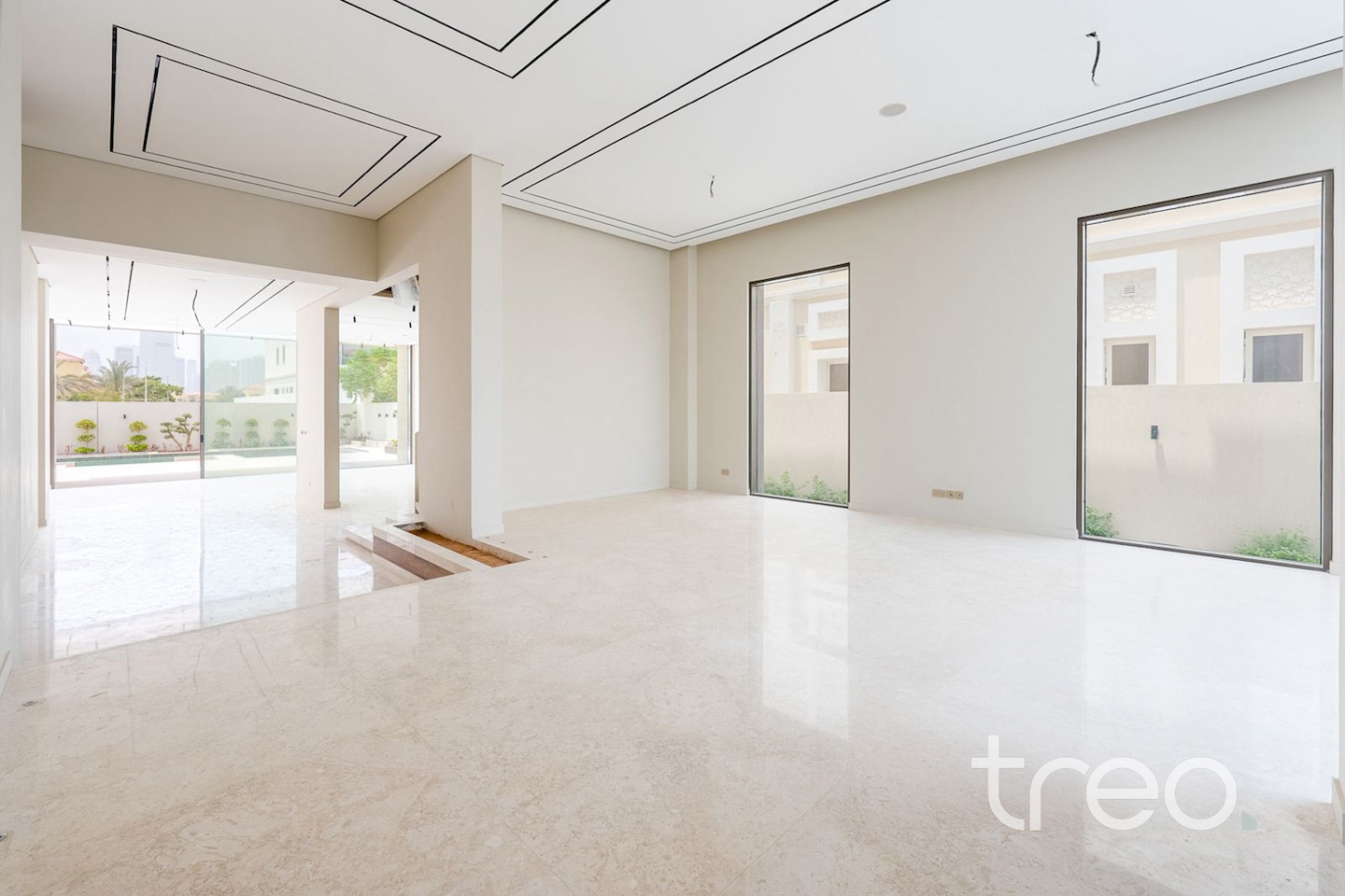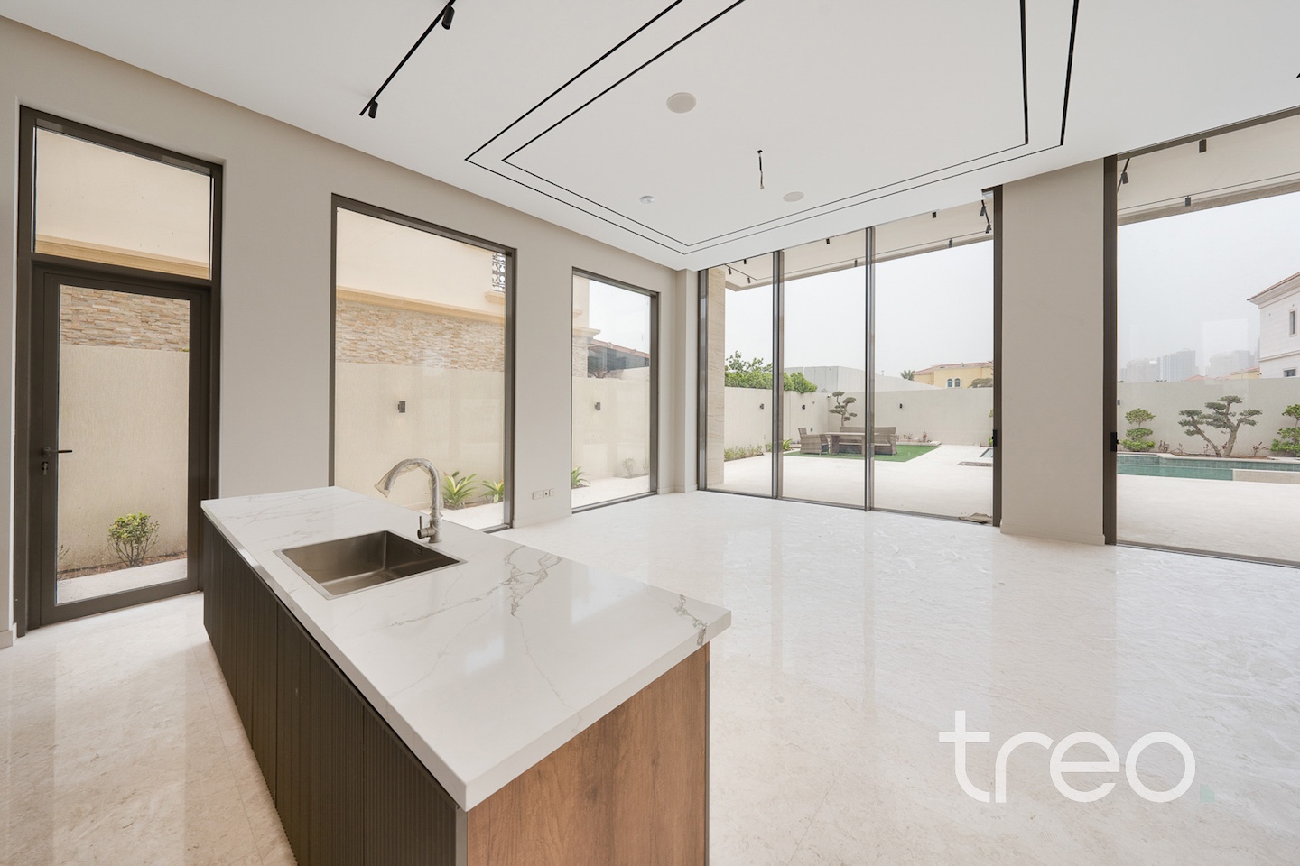 As you enter into the villa through the grand front door, you are met with a fully open contemporary living, dining and kitchen area finished with the highest quality marble and materials built throughout this property. With high ceilings throughout and floor to ceiling windows, sunlight pours into every corner of this villa. This villa features both a functional and a showcase kitchen fully equipped, private elevator, smart home system and maid/driver rooms.