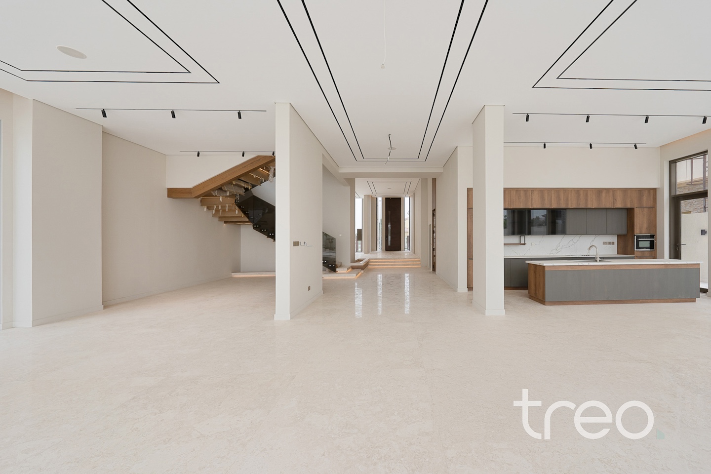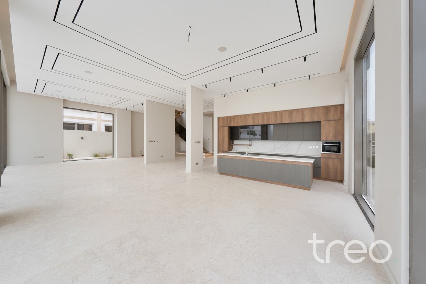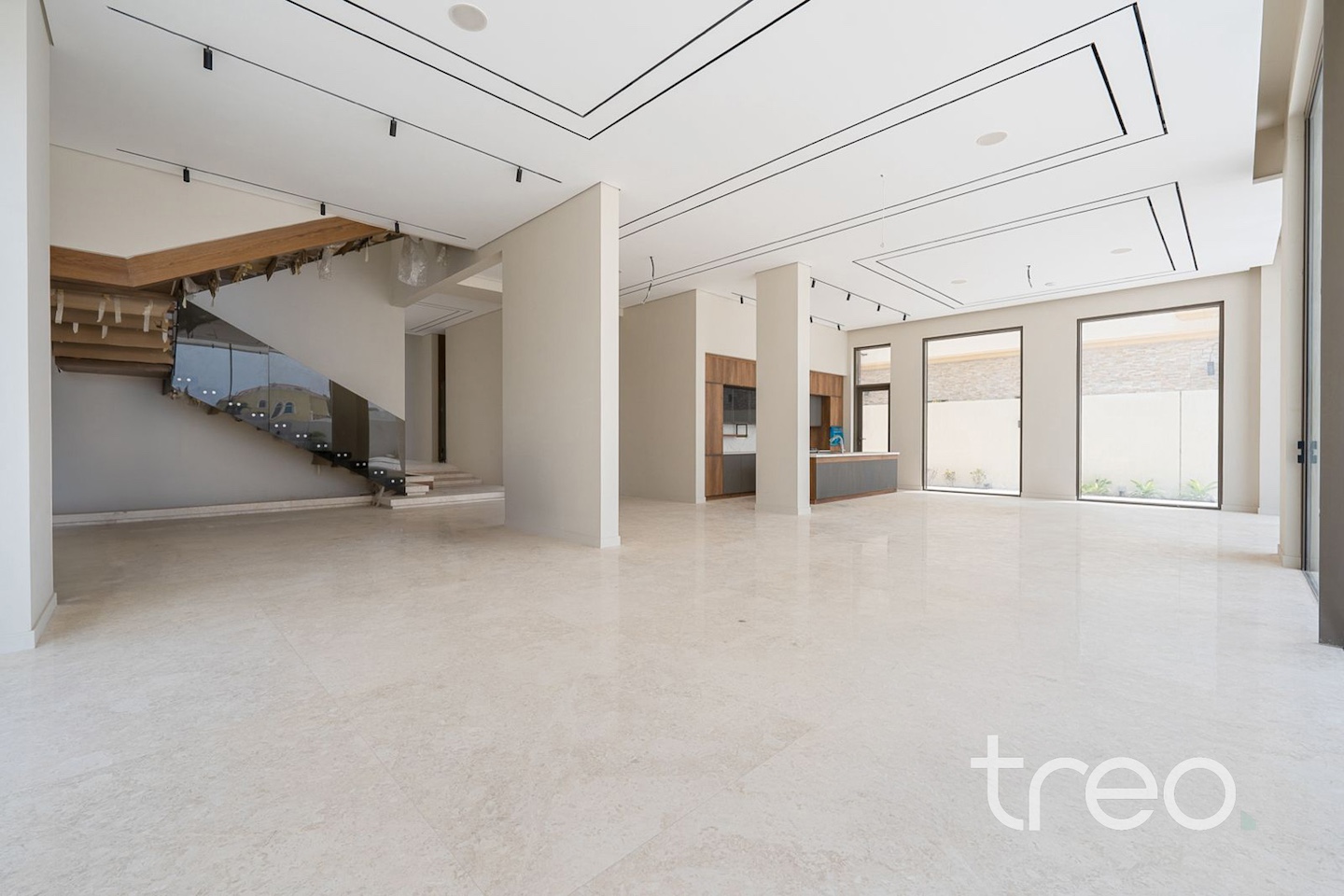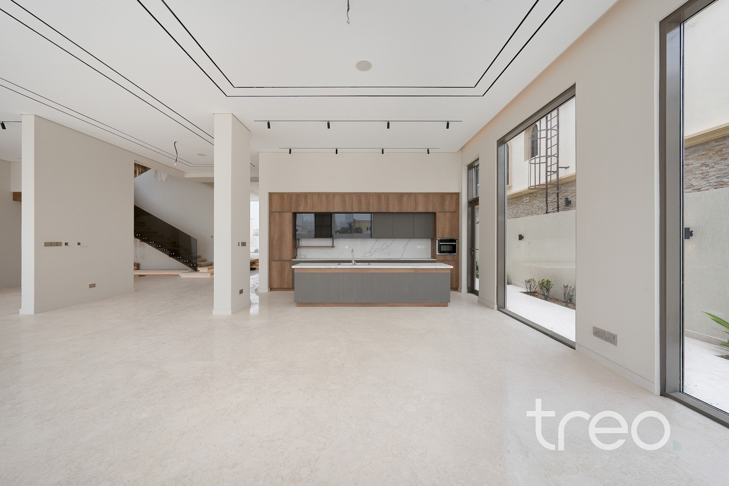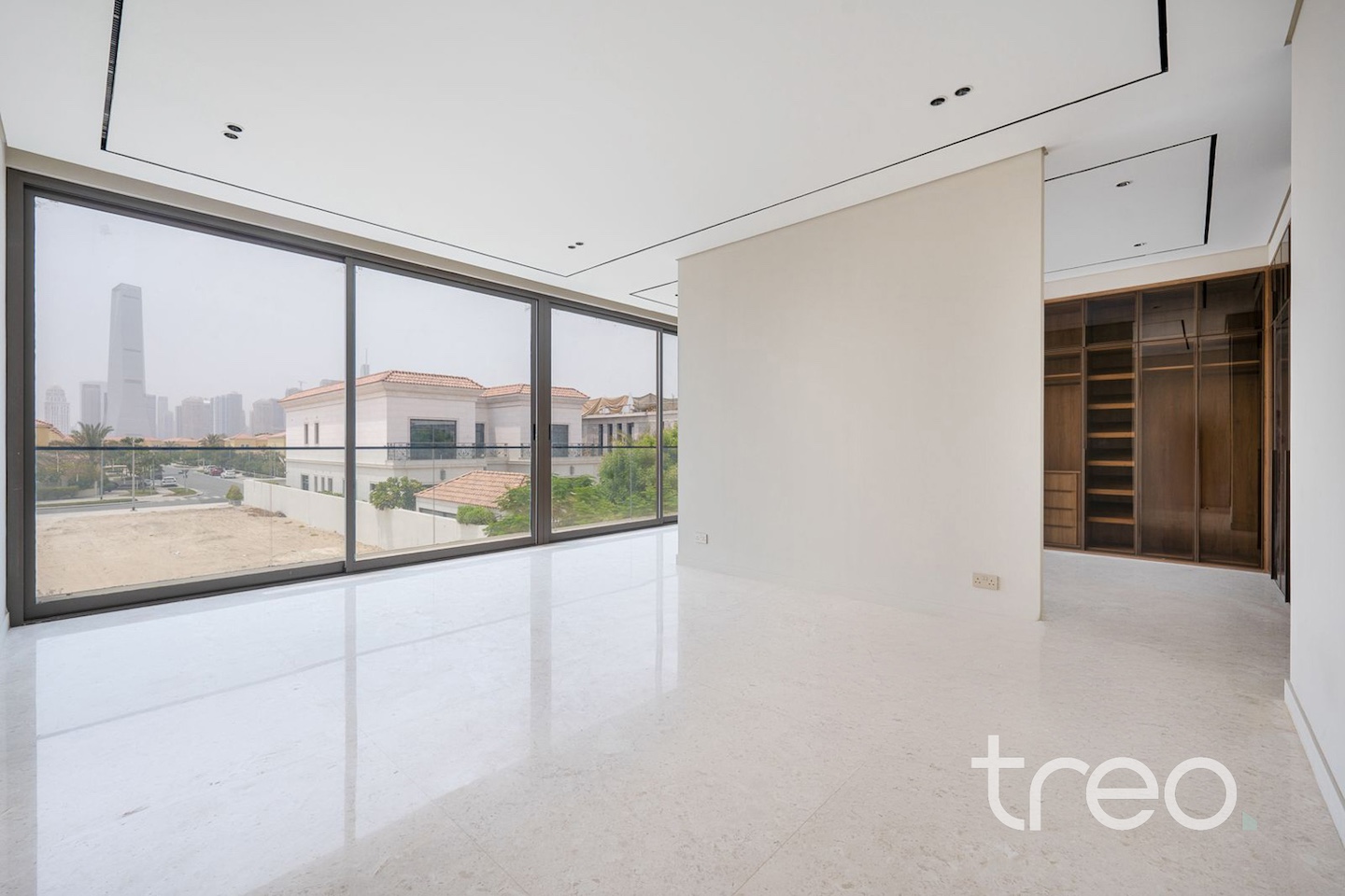 As you enter into the villa through the grand front door, you are met with a fully open contemporary living, dining and kitchen area finished with the highest quality marble and materials built throughout this property. With high ceilings throughout and floor to ceiling windows, sunlight pours into every corner of this villa. This villa features both a functional and a showcase kitchen fully equipped, private elevator, smart home system and maid/driver rooms.