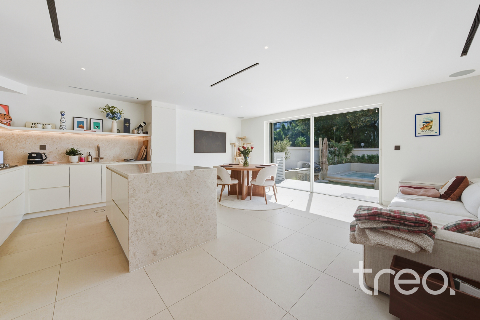 As you enter this highly sought after townhouse, you are immediately greeted with a large open plan living and dining area. The completely redesigned kitchen allows for perfect entertaining. The floor to ceiling sliding doors flood the space with natural light and lead to a stunning garden with an outdoor BBQ, custom seating, mood lighting and an incredible temperature controlled private pool. Upstairs, the master bedroom has been redesigned to include a fully bespoke walk-in wardrobe. The en-suite has been extended to include a vanity, laundry area with washing machine. The bathroom includes designer fittings throughout, and a full bath and separate walk-in shower. Upstairs also has a large upstairs living space with room to extend.