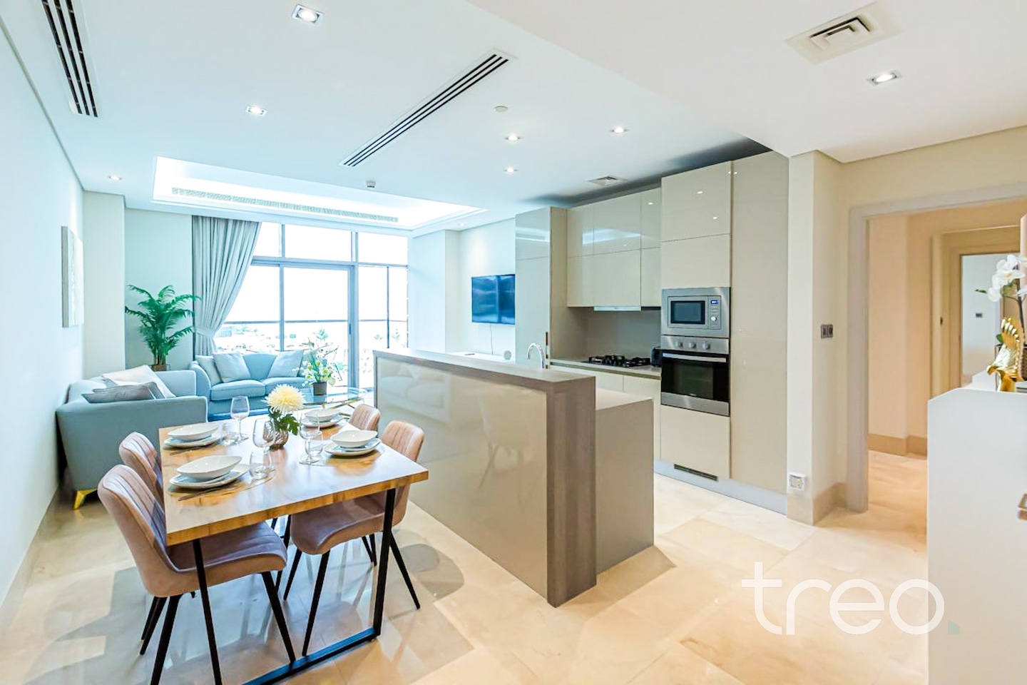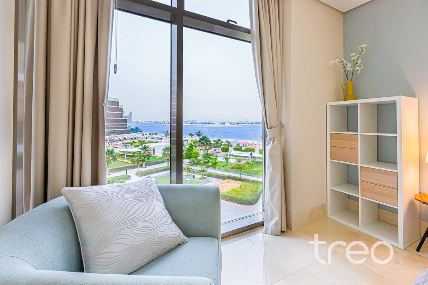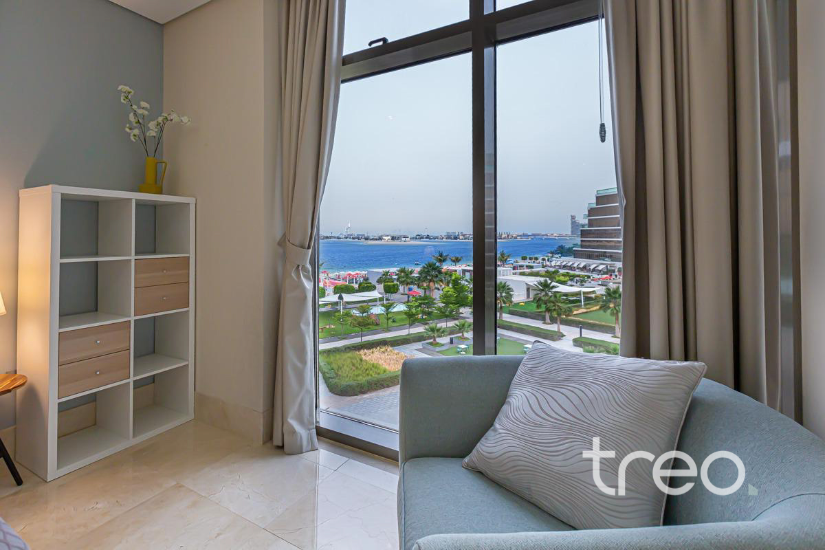 Nestled where the sea meets the sky on Dubai’s iconic Palm Jumeirah, this apartment is special. As you enter, you are immediately greeted into a bright open plan living. The kitchen is modern, fully equipped with an island. The large floor to ceiling doors lead you to a large balcony looking onto the glamorous Ocean. The property boasts two spacious bedrooms, both with en-suites and built in wardrobes. The property also has a unique layout, separate powder room and laundry. The 8 offer residents modern amenities including private beach access.The 8 Palm Dubai Beach Resort,is applauded for its vibrant and relaxing atmosphere. The 8 is like no other residence.