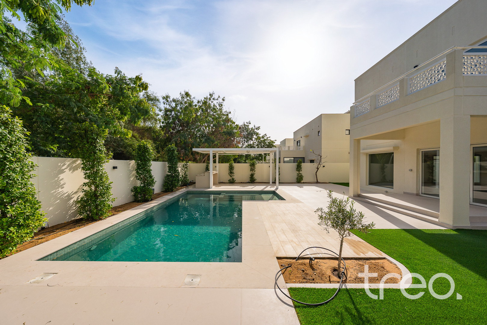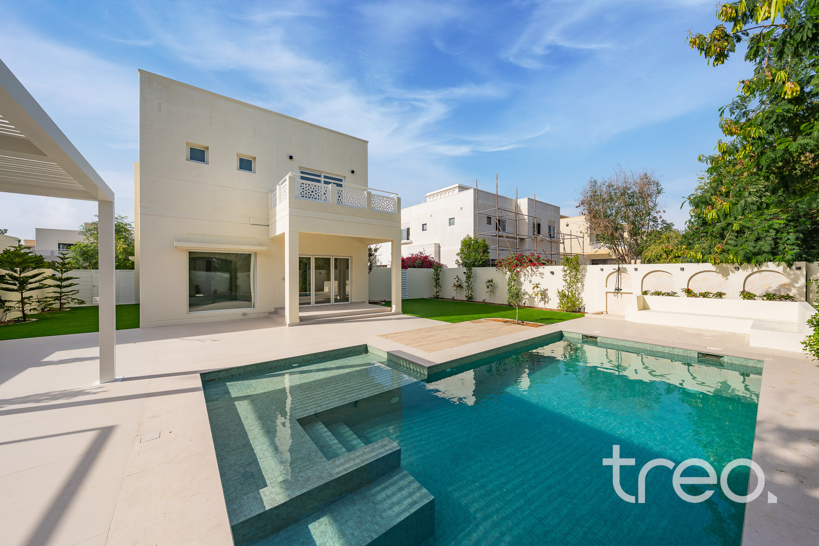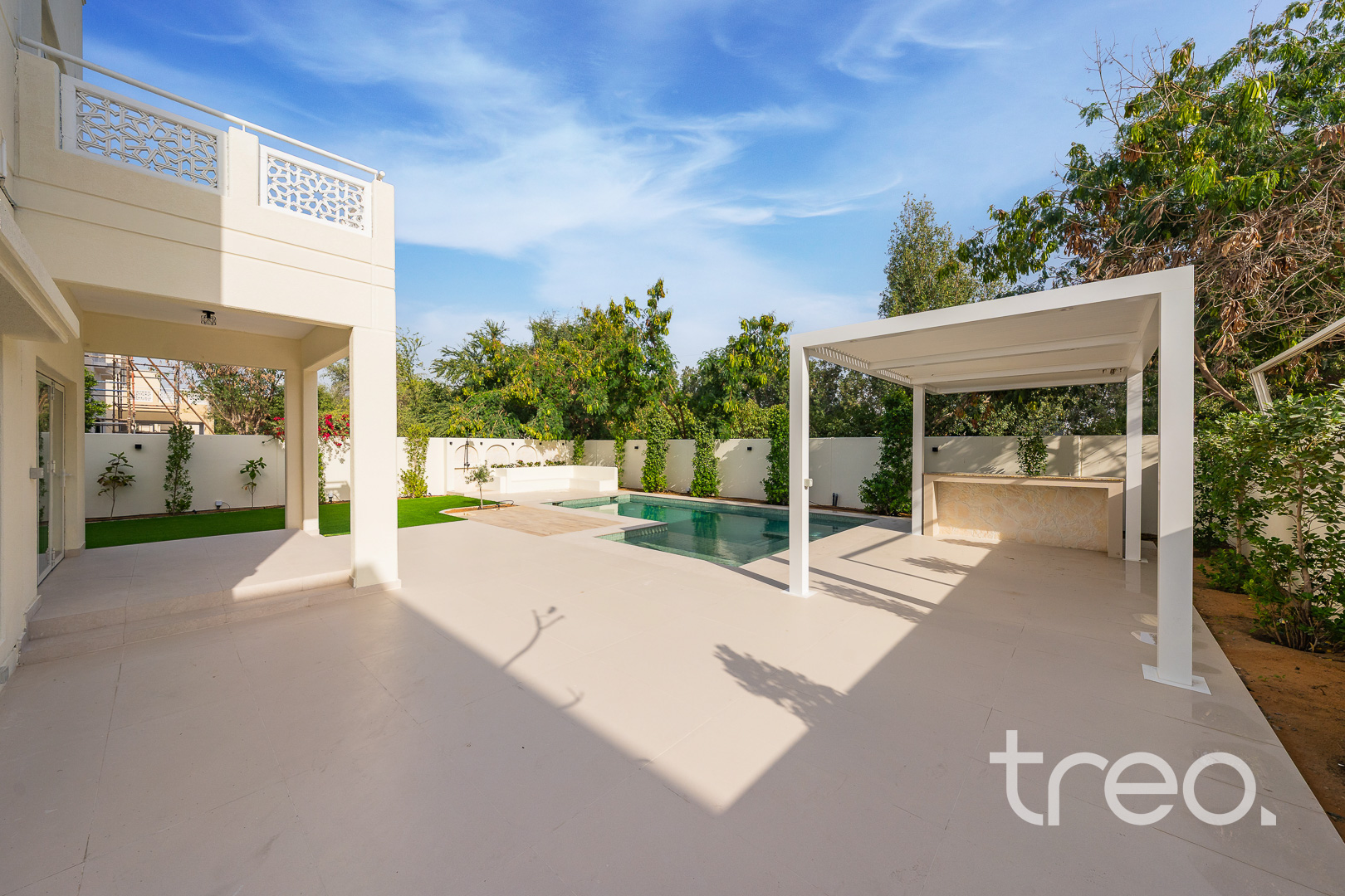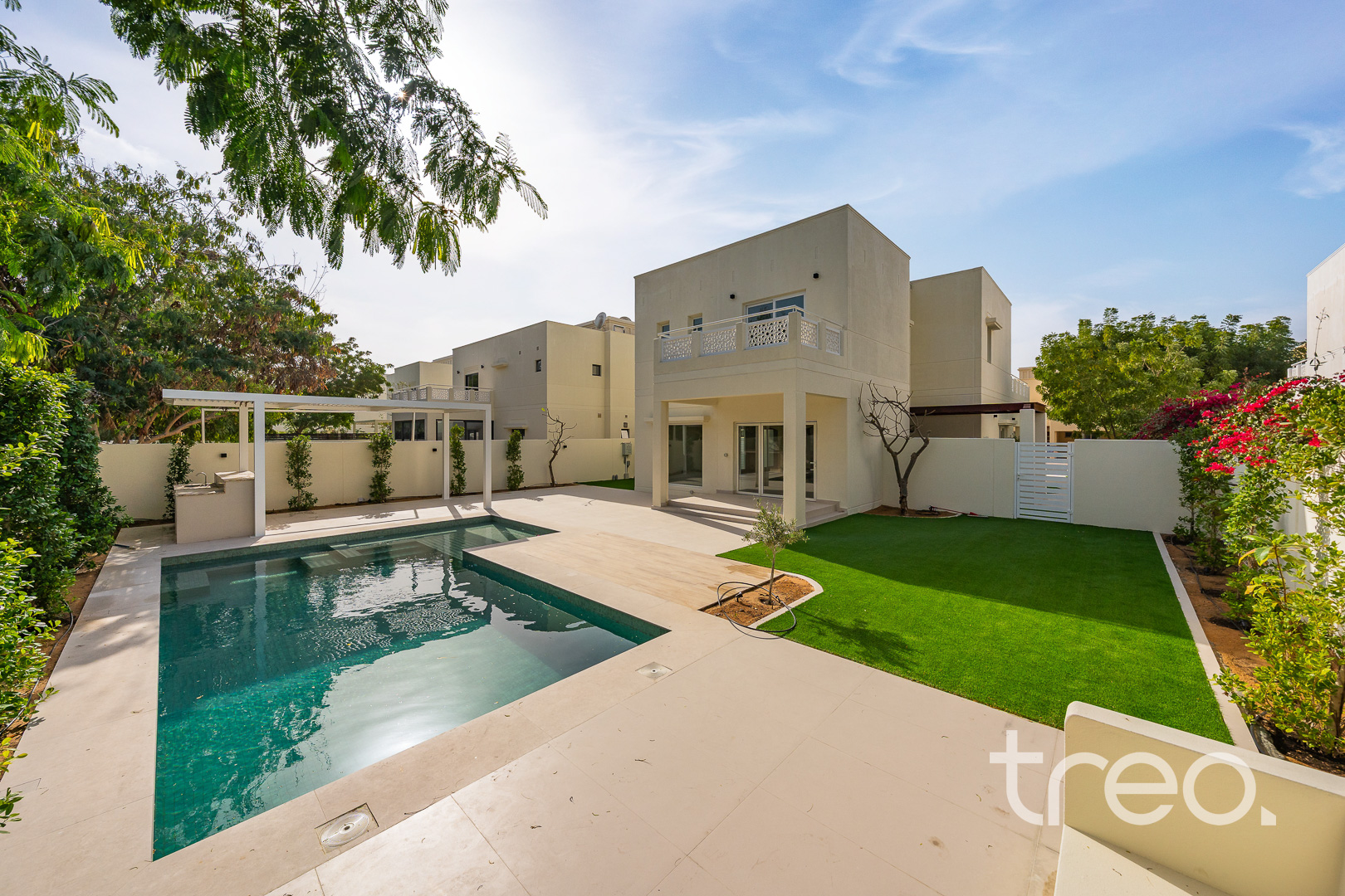 Beautifully crafted with exceptional attention to detail, this home is something special. The entire villa has been meticulously upgraded with high-end finishes, including elegant flooring, designer lighting, a complete new MEP, and brand-new A/C units equipped with smart thermostats for enhanced efficiency and comfort. The open-plan living and dining areas are bathed in natural light, creating an inviting flow that seamlessly connects to the gourmet kitchen—complete with top-of-the-line appliances, and thoughtfully designed storage. The outdoor area truly elevates the property, featuring a private pool, dedicated BBQ space, and a stylish pergola. Surrounded by thoughtfully designed landscaping, it offers a peaceful and private garden.