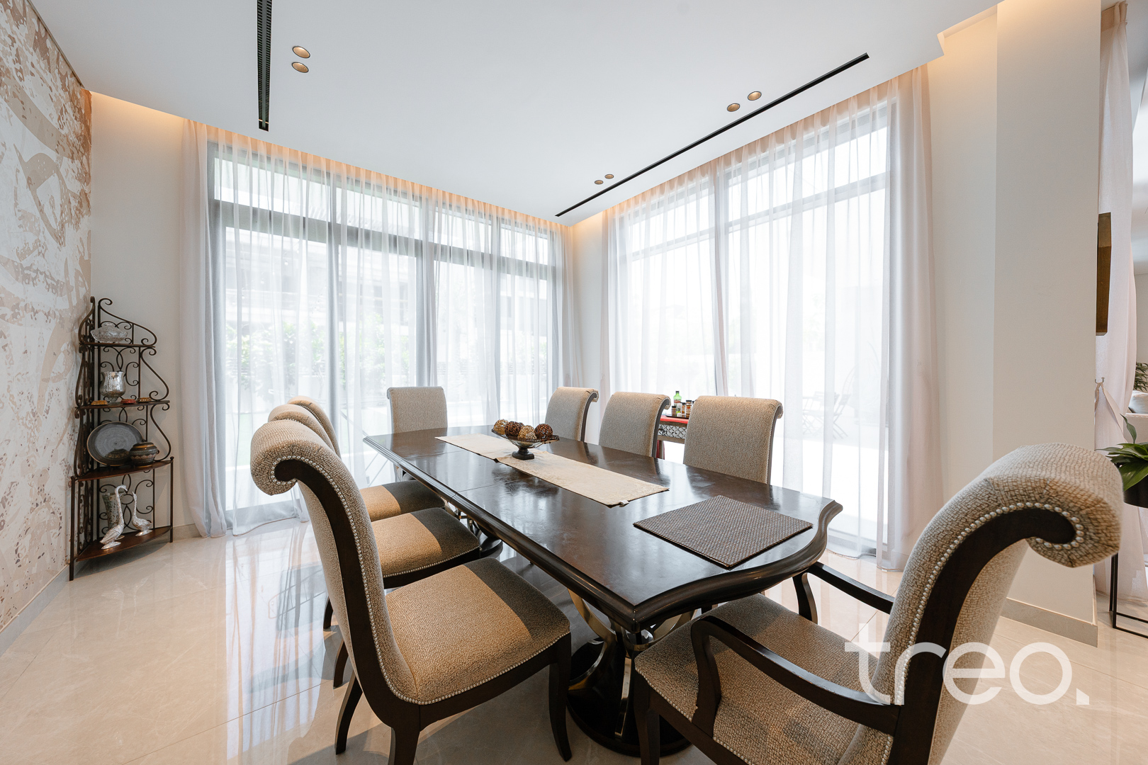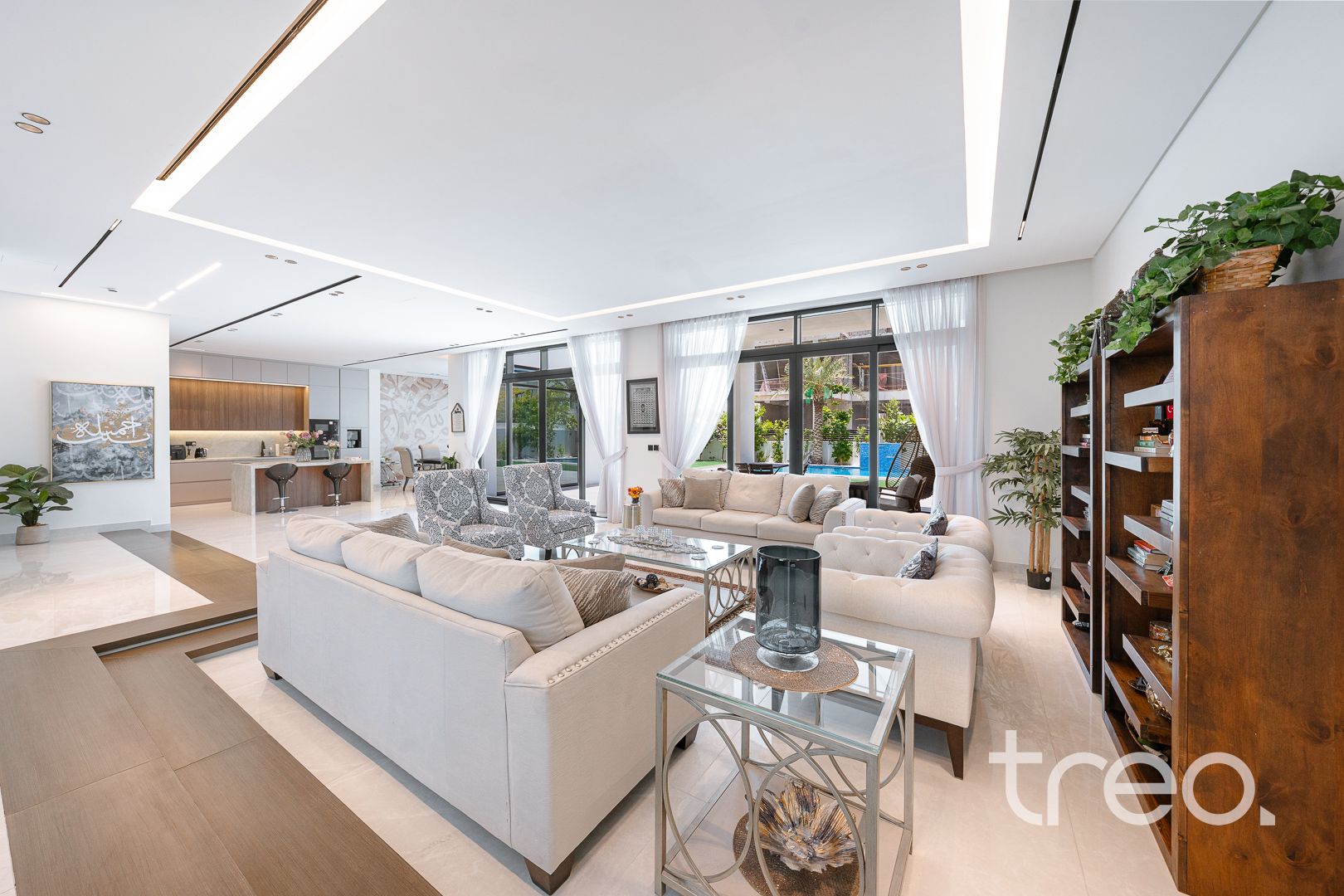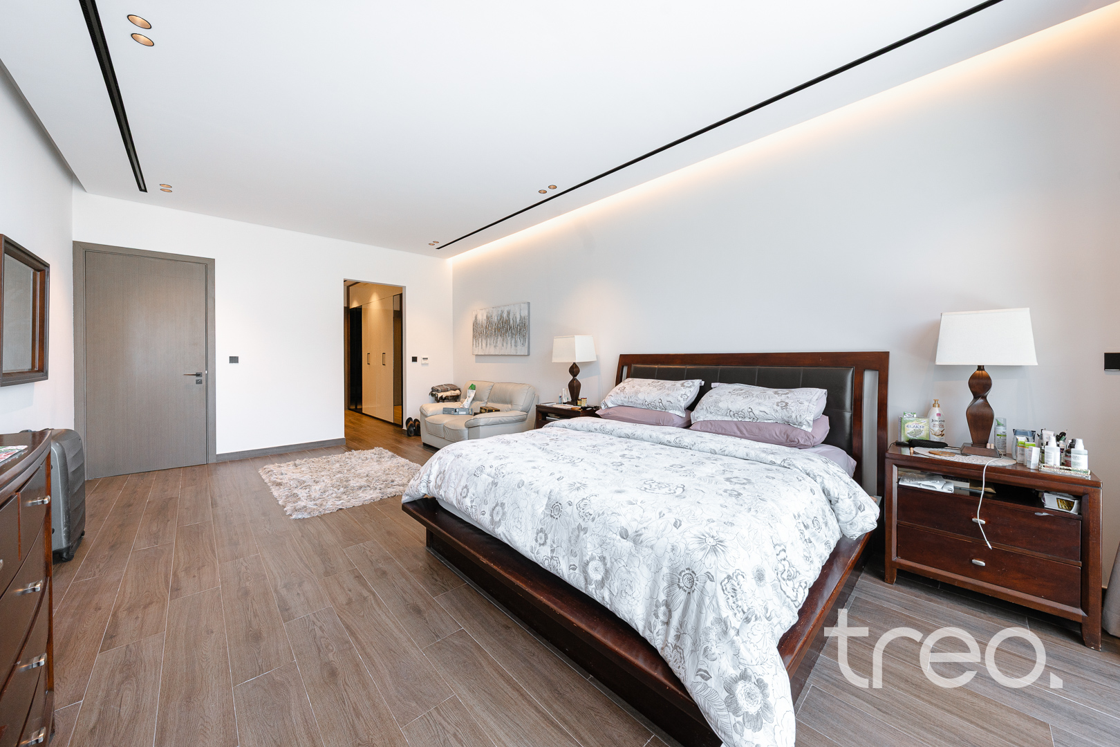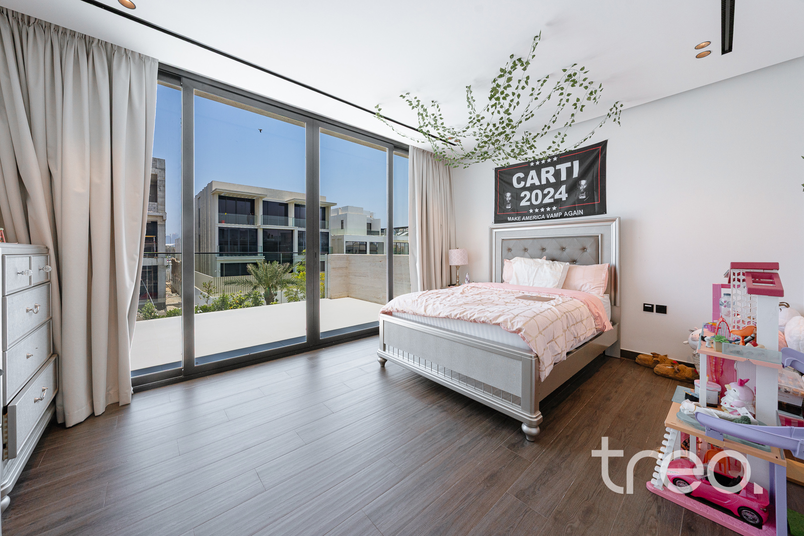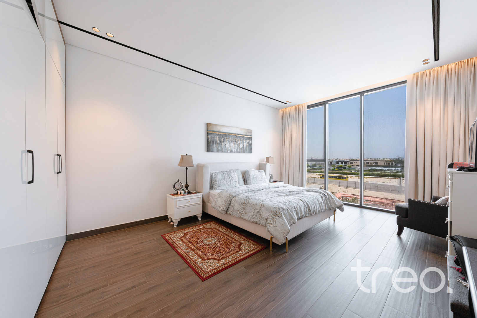 This modern 7 bedroom triplex is new to the market property which comes with 7 fully fitted bedroom with en-suites, chef and show kitchens, maids and driver rooms, elevator, infinity pool and an open plan expansive living and dining area. With 5m double height ceilings in the living room and floor to ceiling windows allows ample natural light to enter the living room and dining. All Bedrooms are spread across the 3 floors with one bedroom on the ground floor, 6 bedrooms between the first and second floor which all connect to the inbuilt elevator allowing for easy of access.