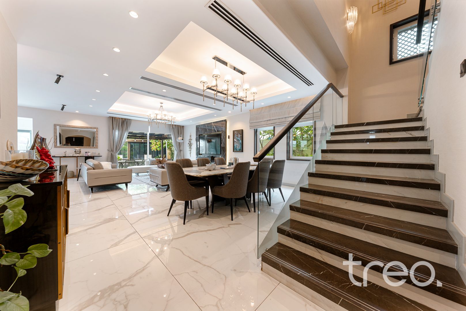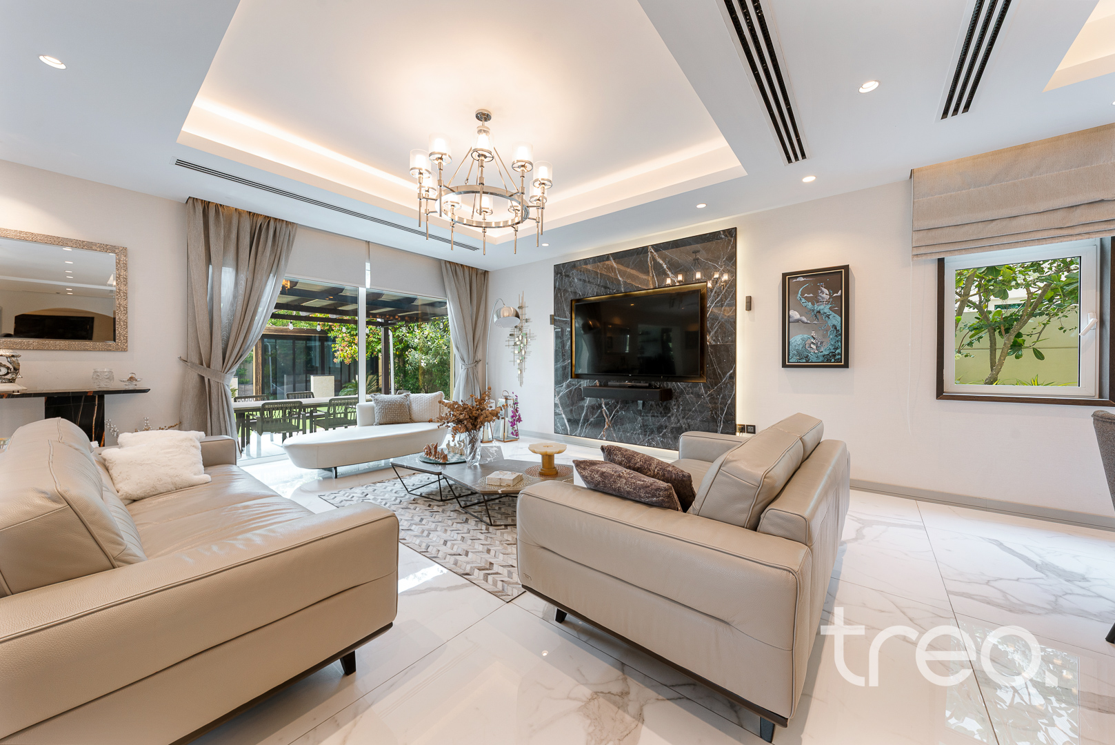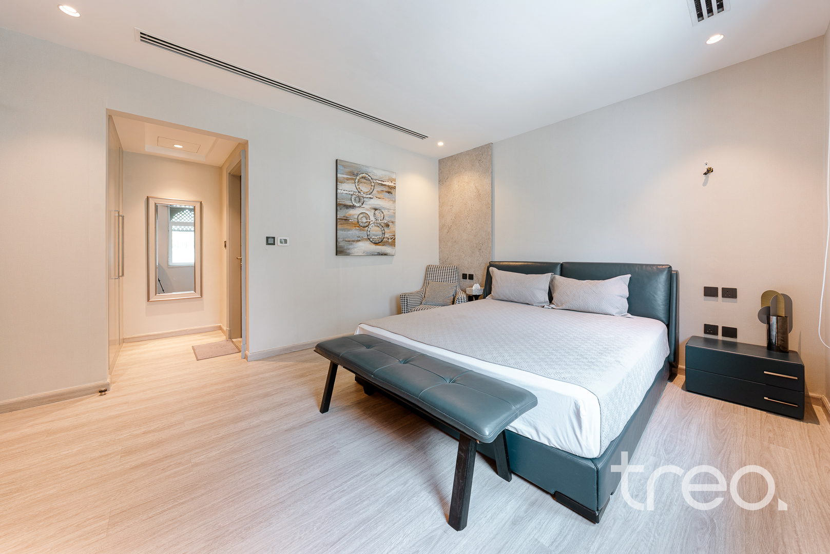 The villa layout has been extended to enlarge the open plan living, dining which connects to the fully integrated kitchen. Additionally, this villa has extended ceilings throughout, french sliding doors, a TV media wall, a double garage and maid rooms. Upstairs has 3 en-suite bedrooms with bespoke built-in wardrobes, with the master bedroom having a remodelled layout to allow for dual walk-in closet systems. The garden has been fully landscaped with an additional pergola, a private swimming pool and a BBQ area. Finance is available on this property through Treo Mortgaging Partners.