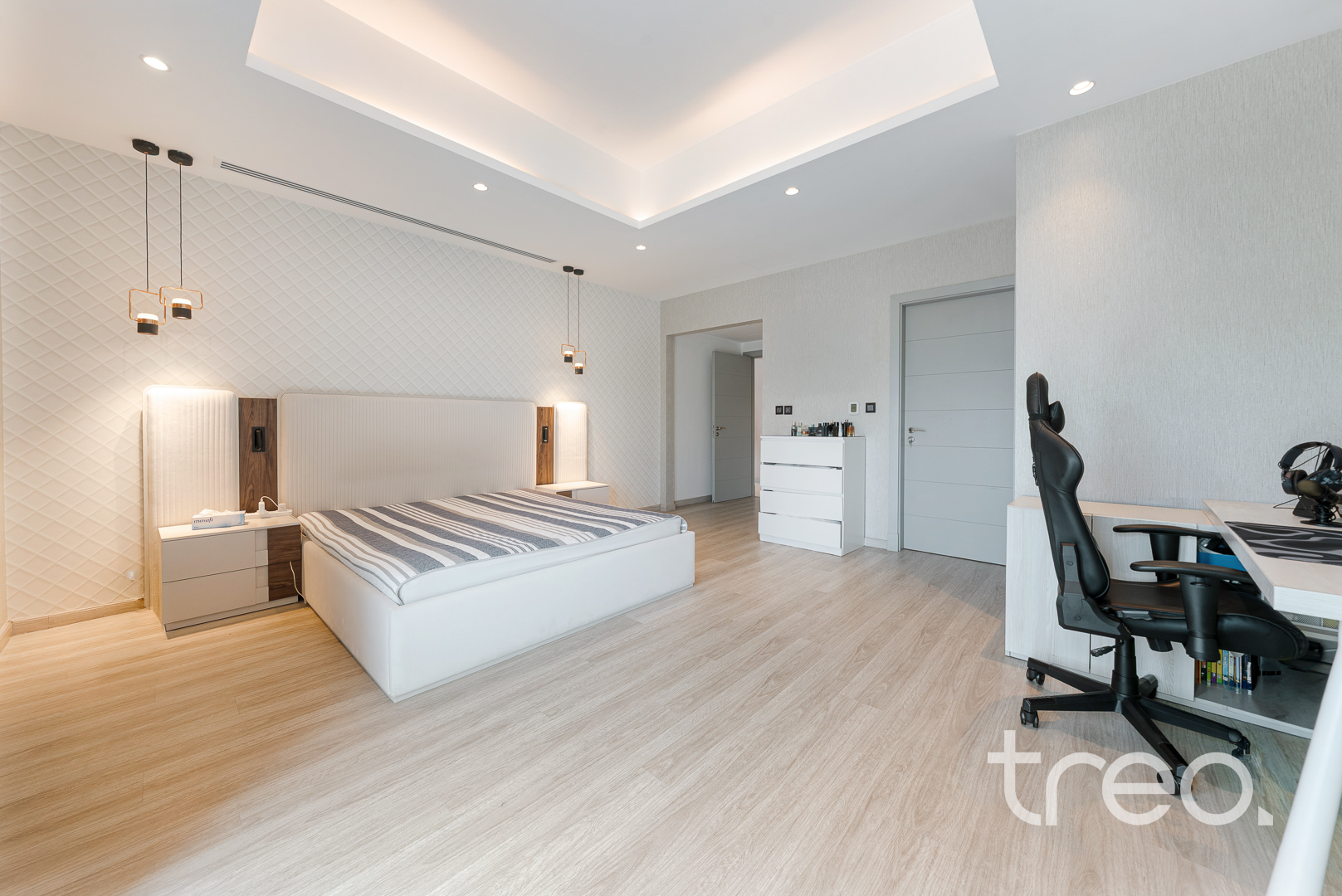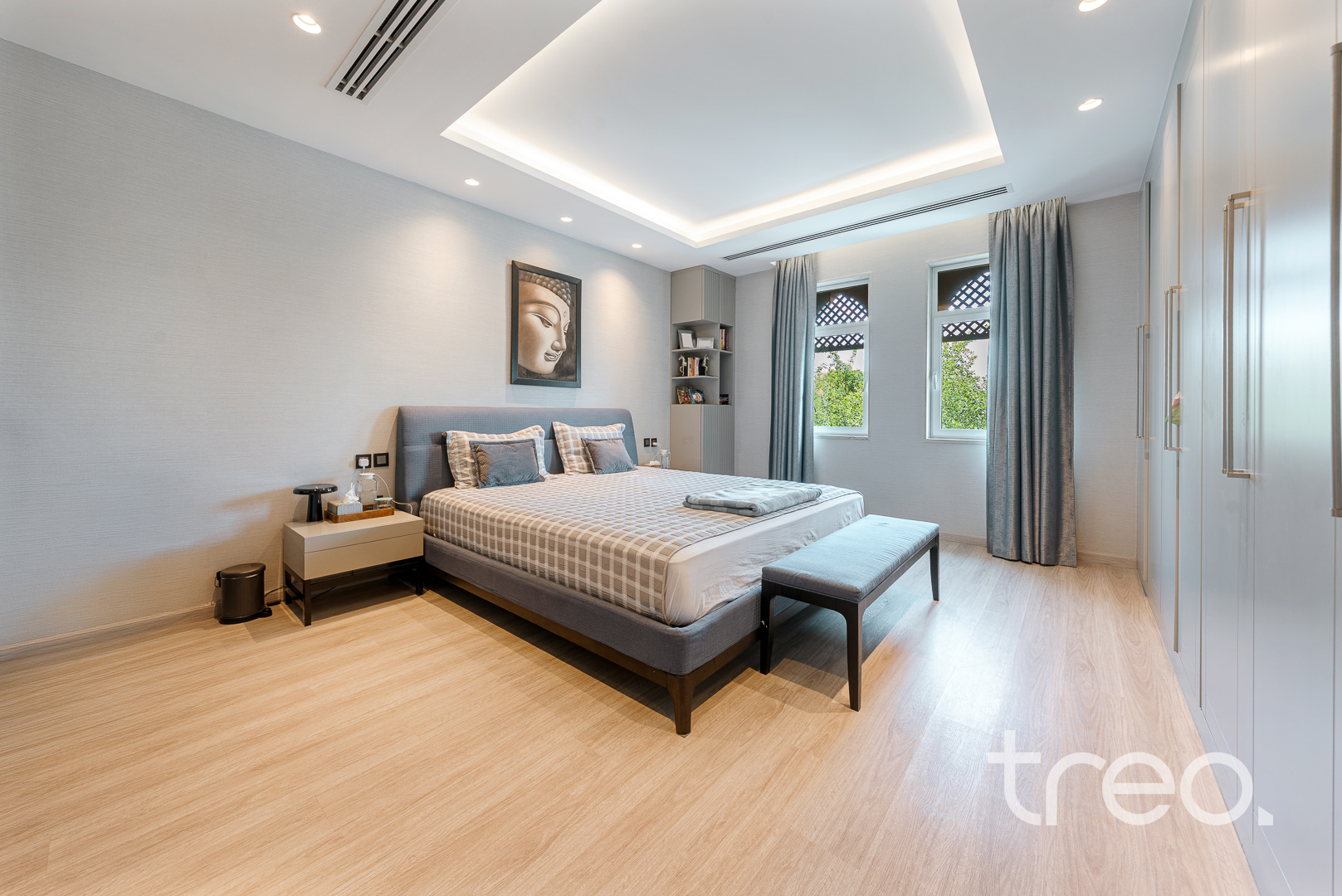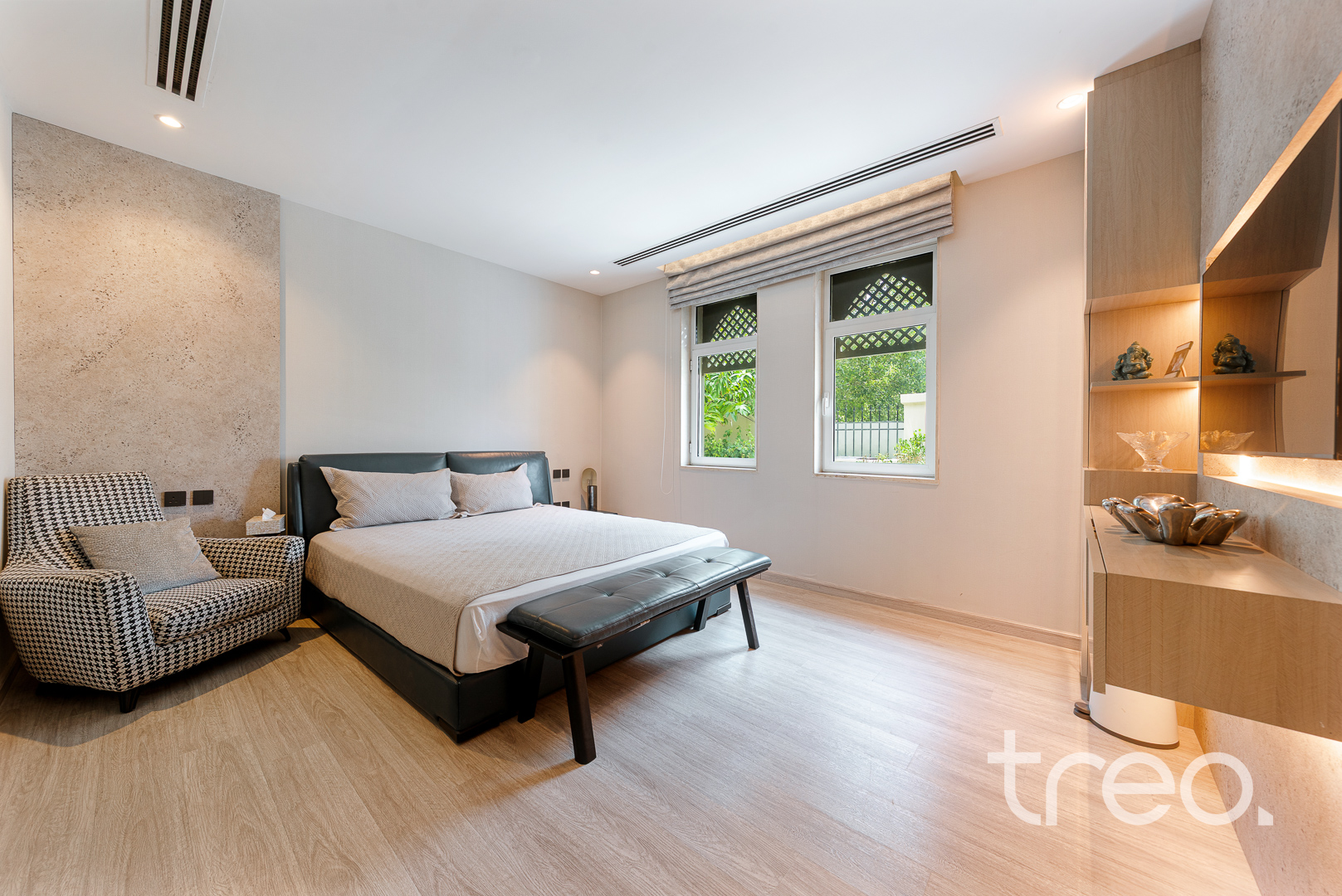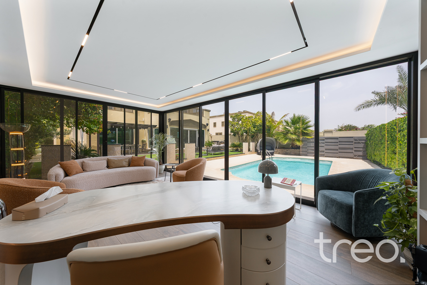 The villa layout has been extended to enlarge the open plan living, dining which connects to the fully integrated kitchen. Additionally, this villa has extended ceilings throughout, french sliding doors, a TV media wall, a double garage and maid rooms. Upstairs has 3 en-suite bedrooms with bespoke built-in wardrobes, with the master bedroom having a remodelled layout to allow for dual walk-in closet systems. The garden has been fully landscaped with an additional pergola, a private swimming pool and a BBQ area. Finance is available on this property through Treo Mortgaging Partners.