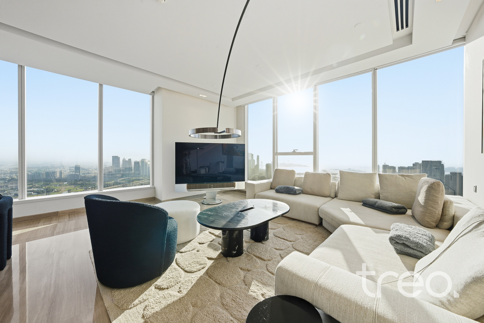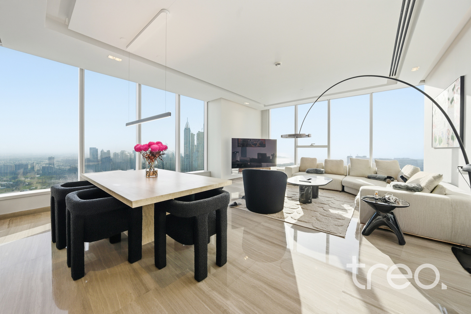 Luxury upgraded 3-bedroom, 4-bathroom high-floor apartment in Dubai Media City with panoramic views of both Dubai Marina and Palm Jumeirah. Bright open-plan living and dining area with floor-to-ceiling windows, a sleek modern kitchen, and high-quality finishes throughout. Spacious bedrooms with built-in wardrobes and elegant bathrooms designed for comfort and style. Prime location with easy access to Marina, Palm, and SZR, surrounded by dining and retail. Ready to move in, ideal for end users or investors. A rare opportunity in a sought-after waterfront skyline location, perfect for luxury living and strong long-term rental returns..